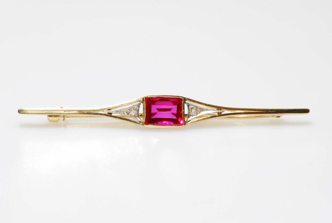 Art Deco Synthetic Ruby & Diamond Bar Brooch