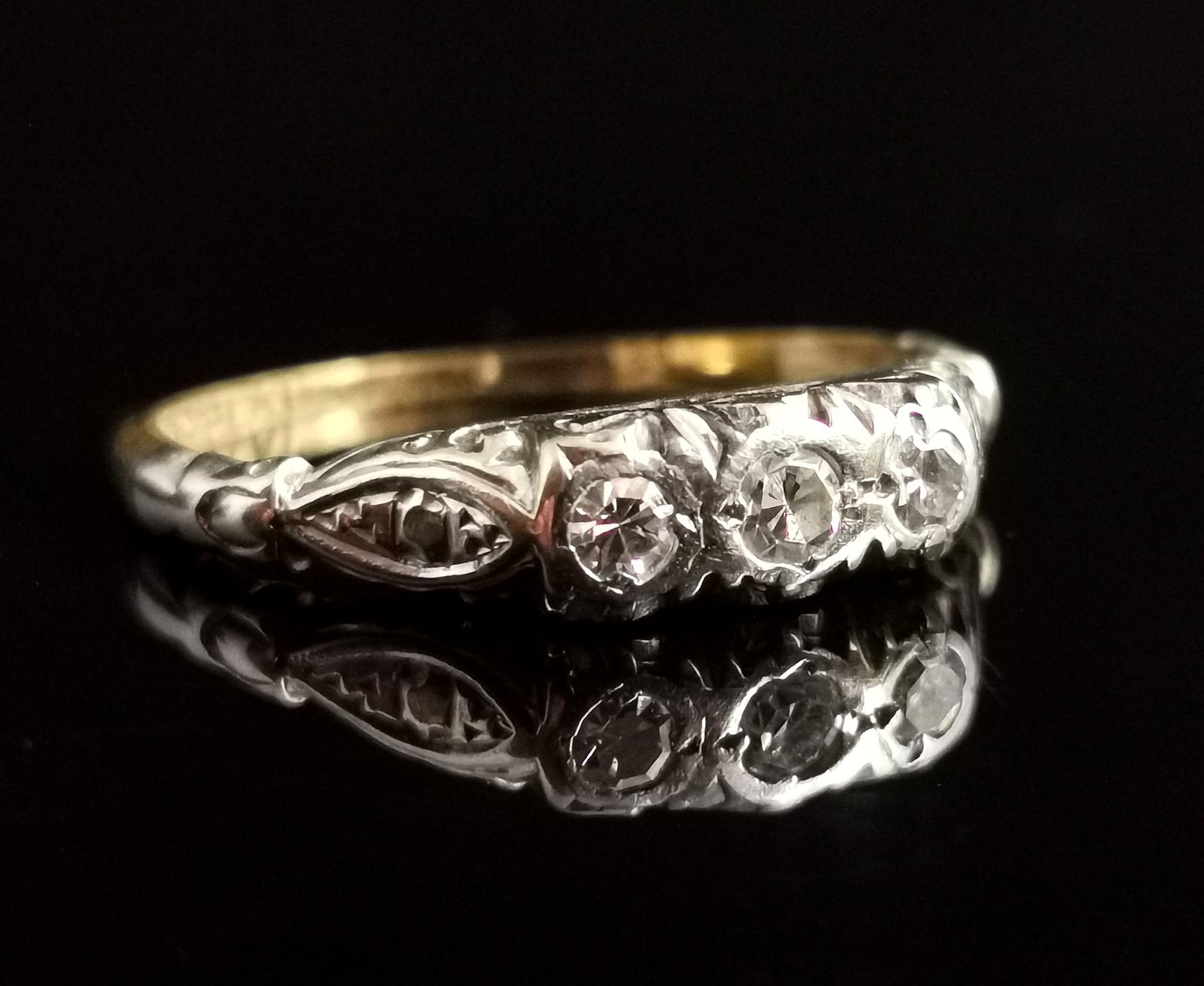 Art Deco Three Stone Diamond Ring, 18ct Gold & Platinum