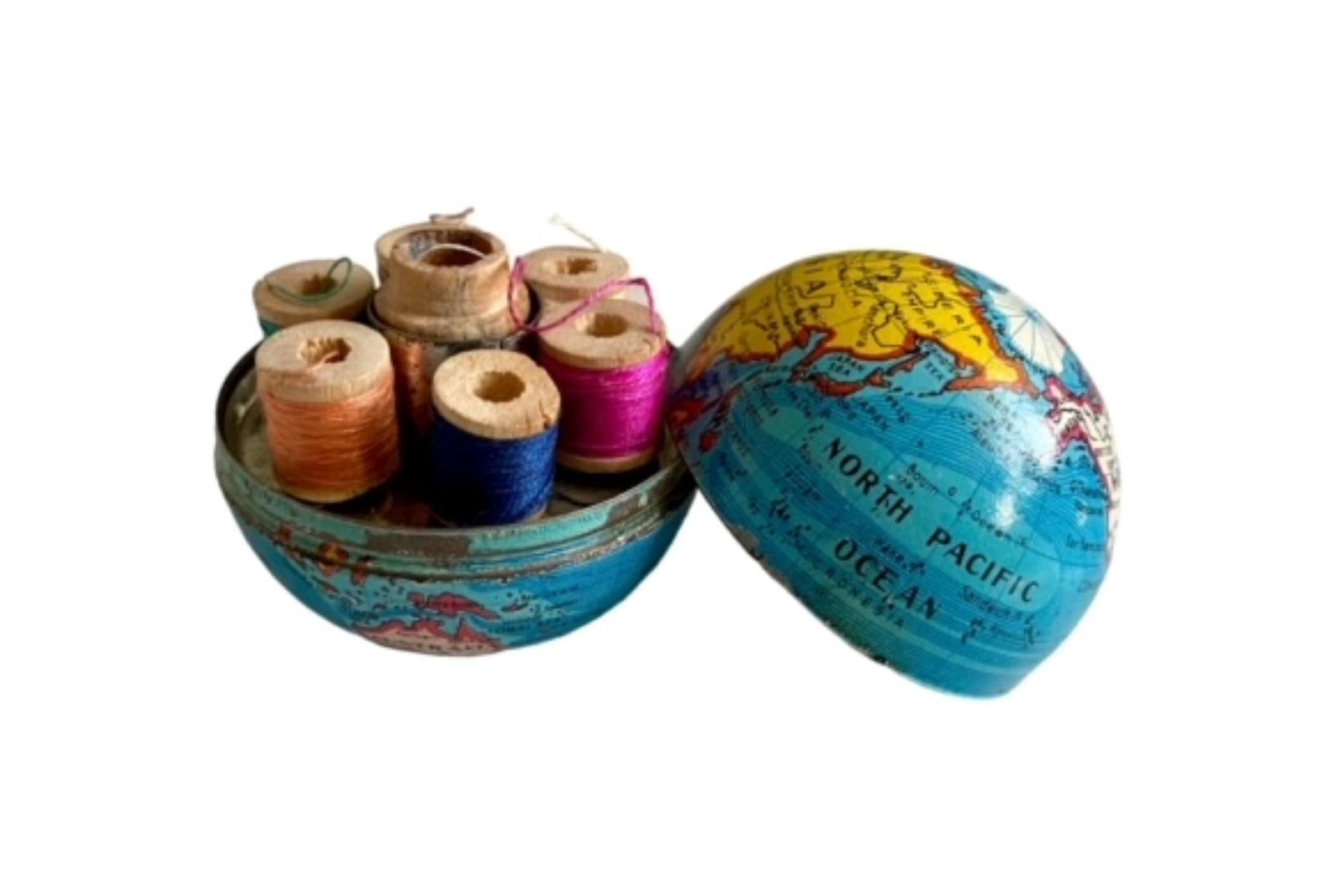 Art Deco Tin Plate Novelty World Globe Form Sewing Etui c.1920