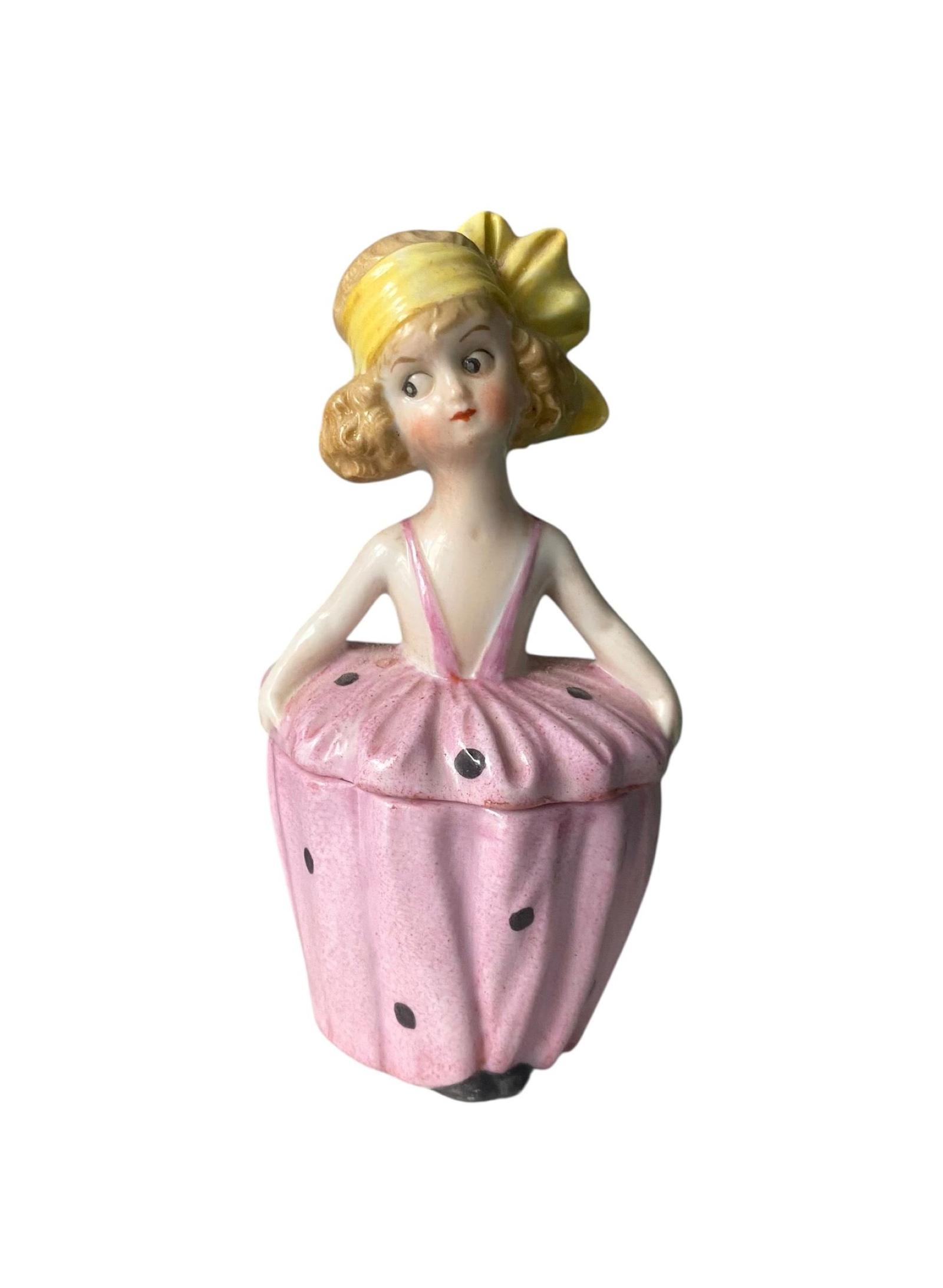 Art Deco Trinket / Powder Pot Box German Porcelain Figural Little Googly Girl Circa 1930