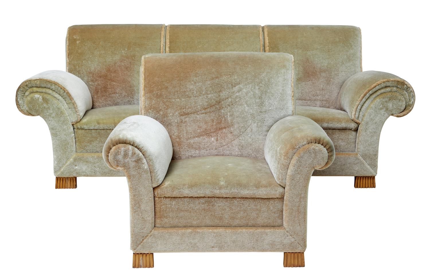 Art Deco Upholstered Armchair & Sofa (1 of 9)