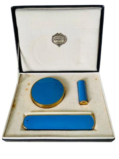 Art Deco Vintage 1940s Dubarry Powdrette Vanity Boxed Set Powder Compact Lipstick & Comb Unused