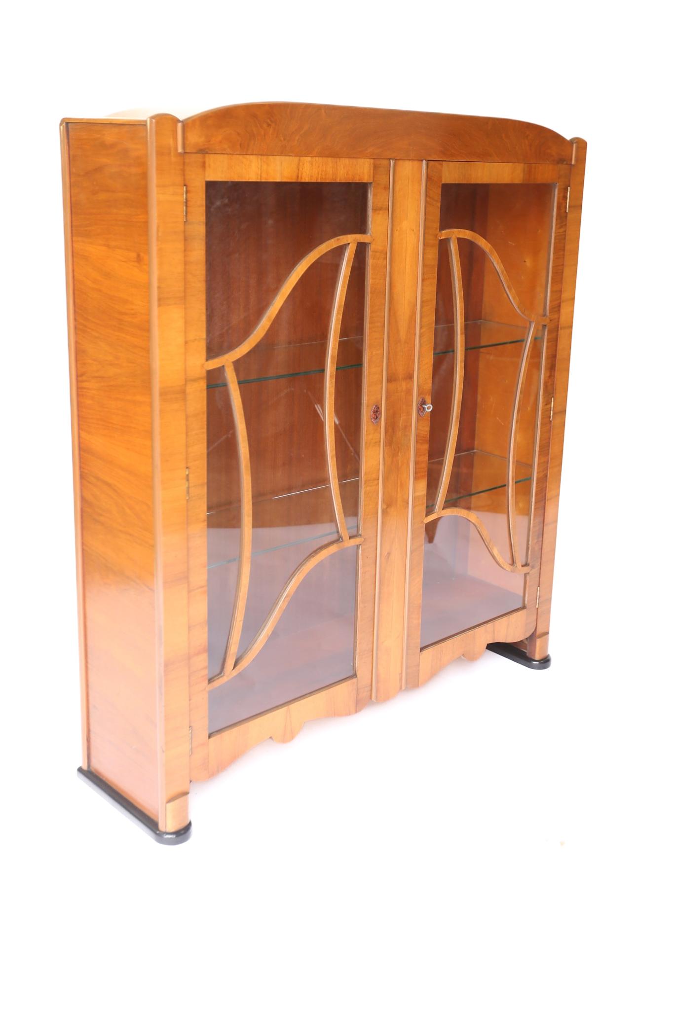 Art Deco Walnut 2 Door Display Cabinet 1930s