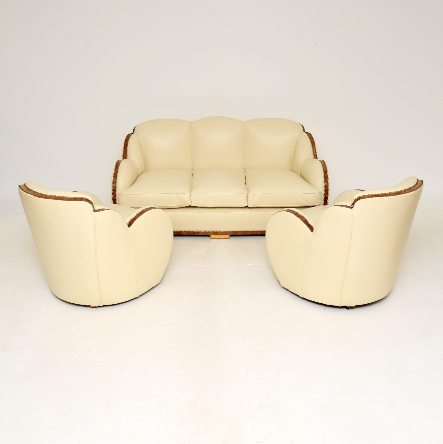 Art Deco Walnut and Leather Cloud Back Armchairs and Sofa by Epstein