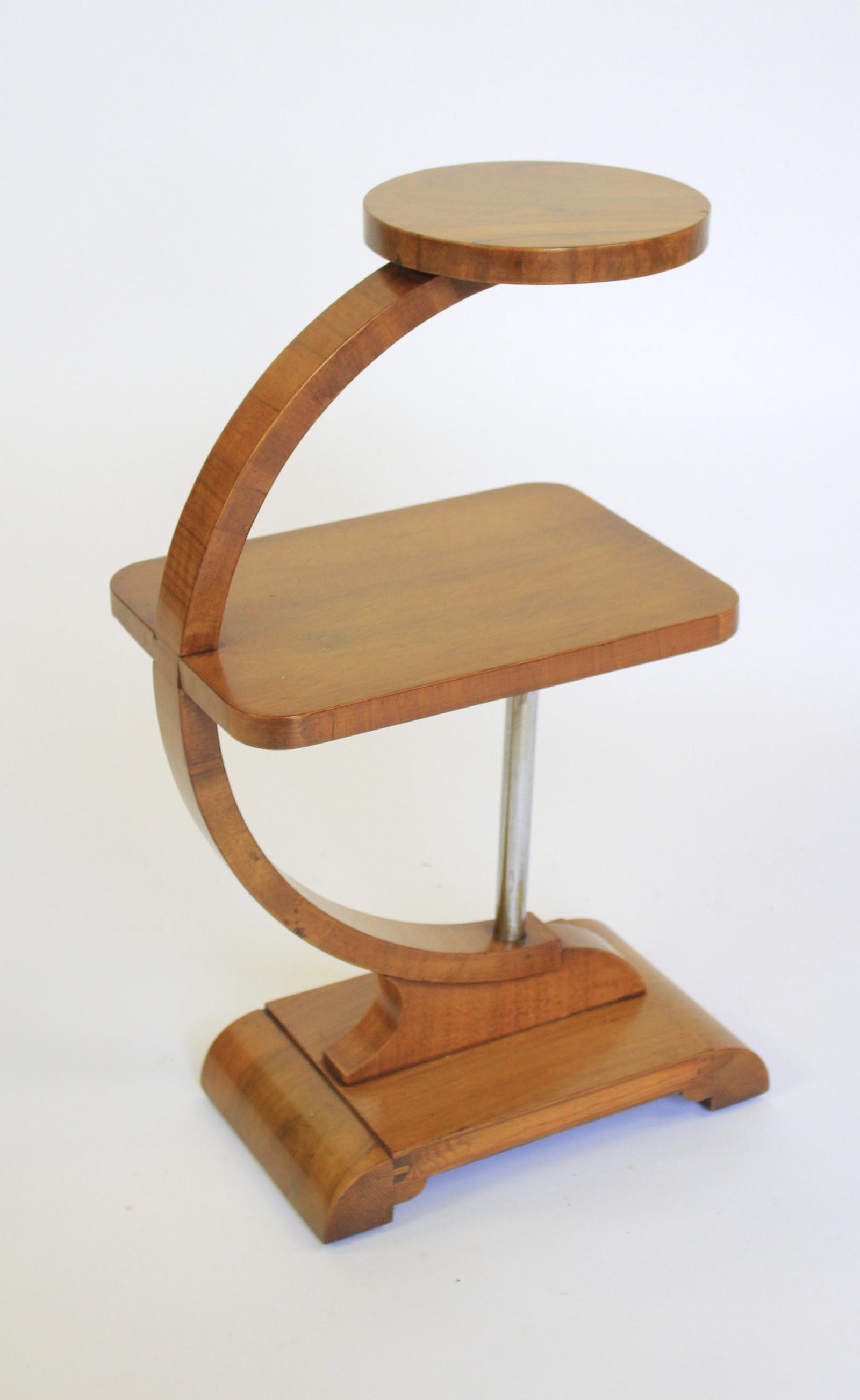 Art Deco Walnut & Chrome 2 Tier Lamp Table c.1930