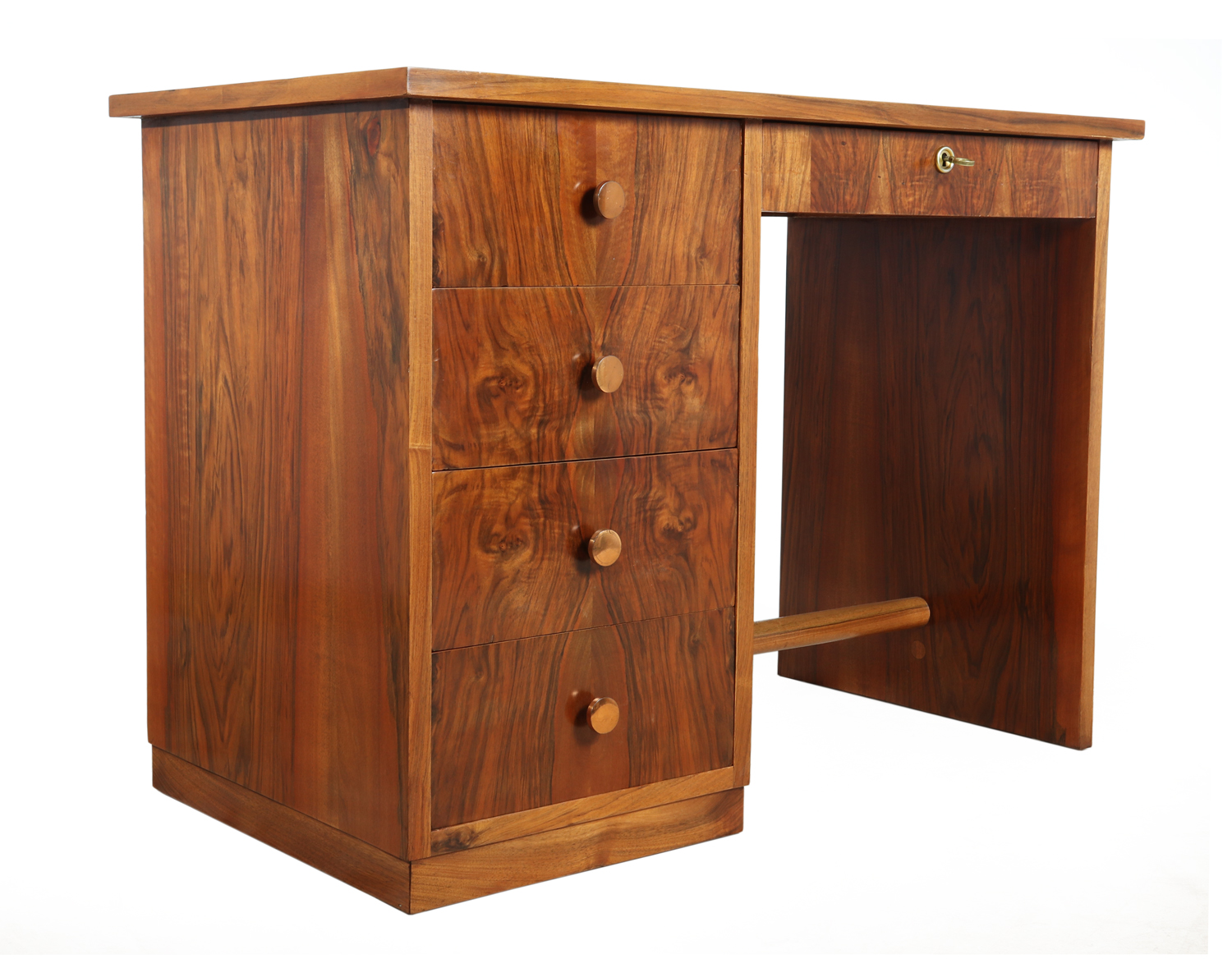 Art Deco Walnut Desk with Leather Inset Top c.1930