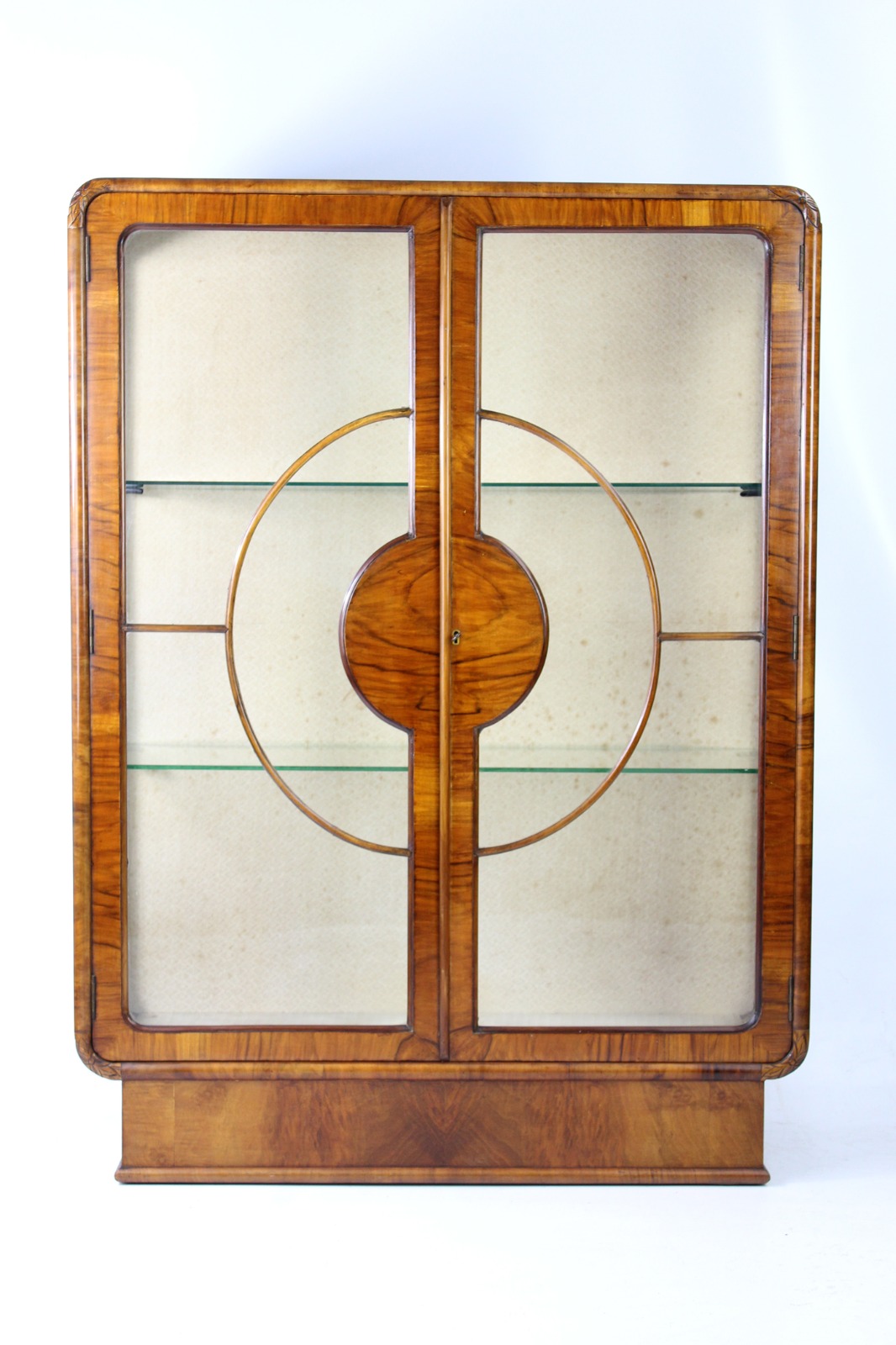 Art Deco Walnut Display Cabinet / Bookcase (1 of 1)