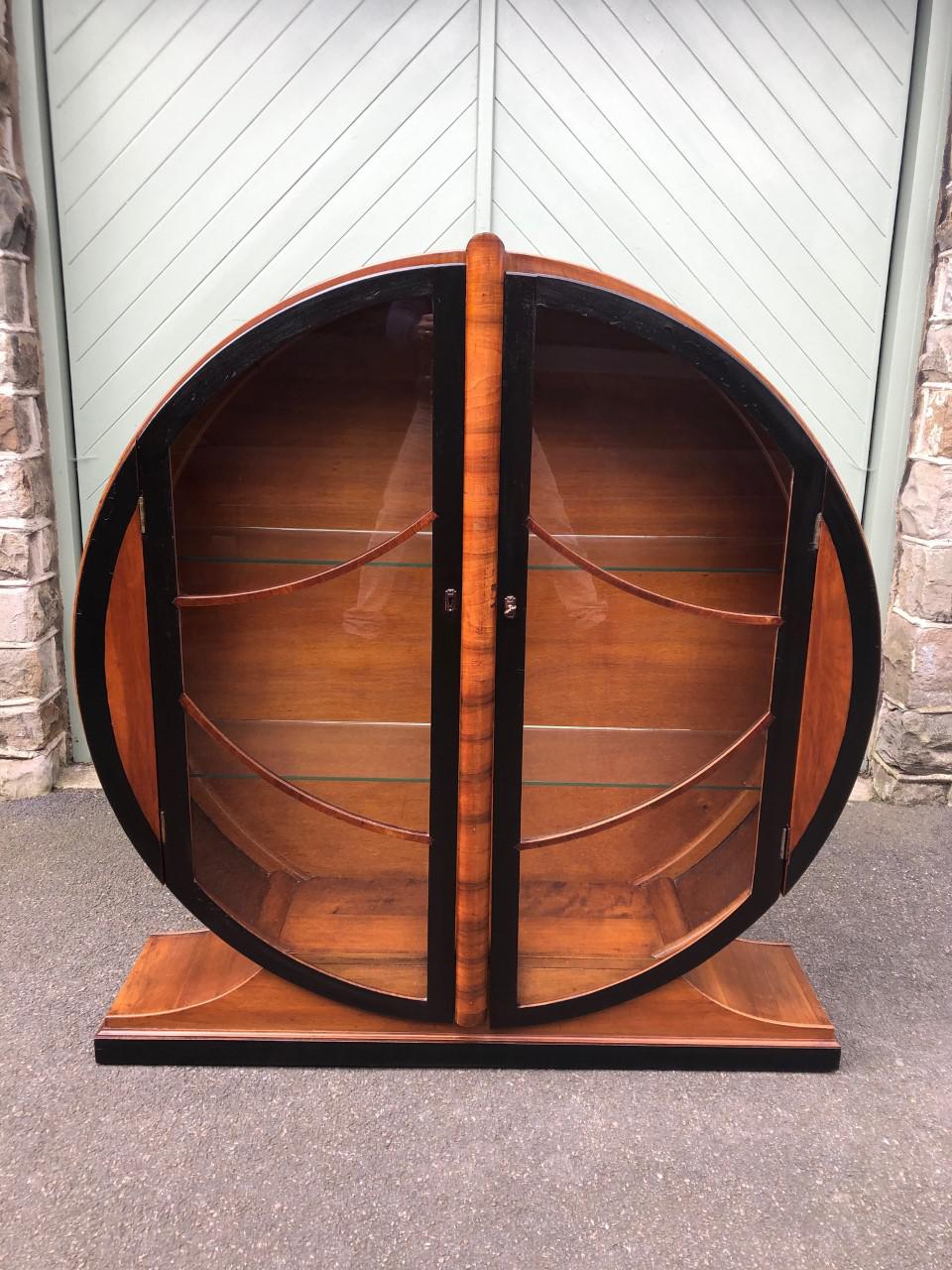 Art Deco Walnut & Ebonised Round Display Cabinet