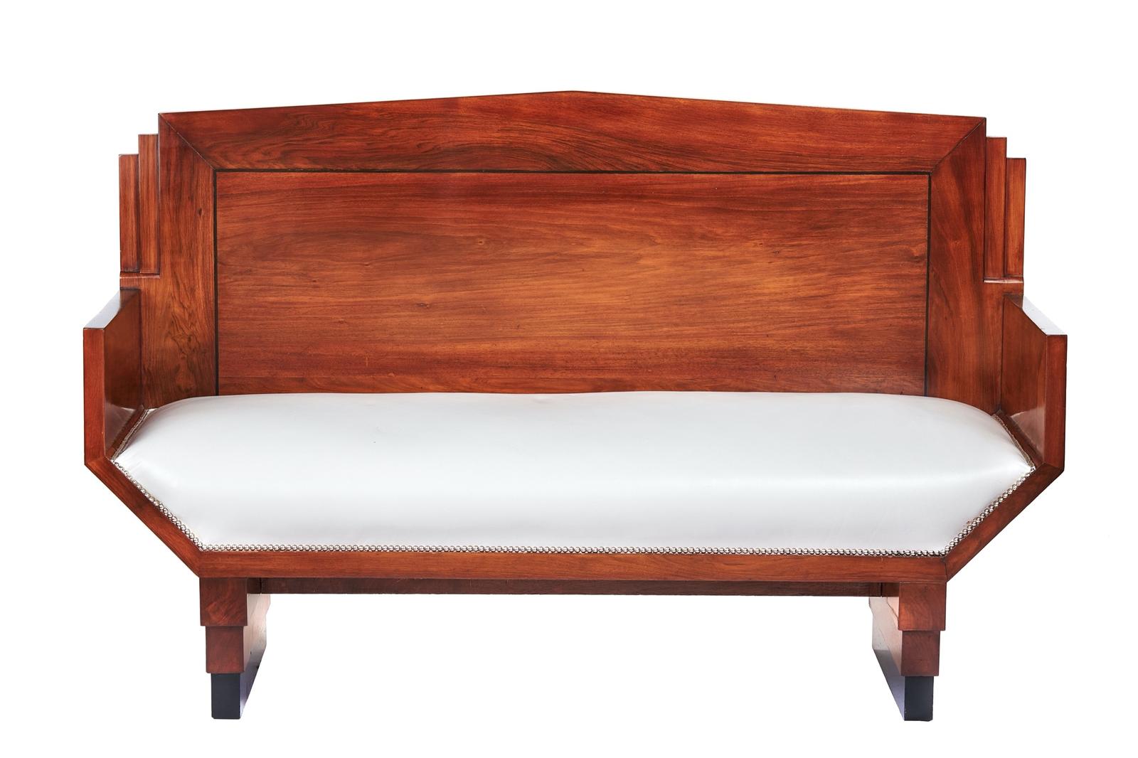 Art Deco Walnut & Leather Settle c.1920 (1 of 7)