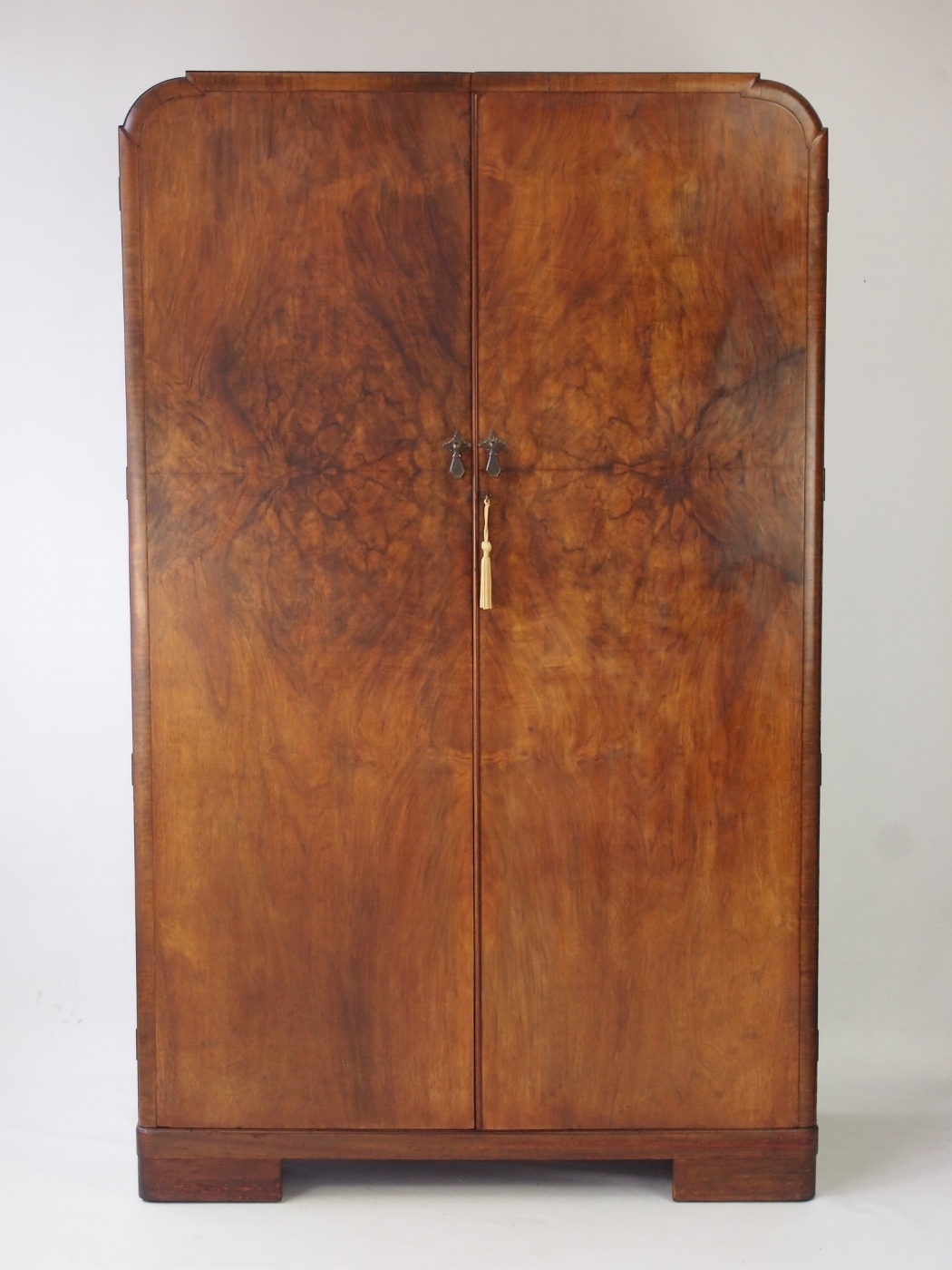 Art Deco Walnut Wardrobe with Fitted Interior (1 of 1)