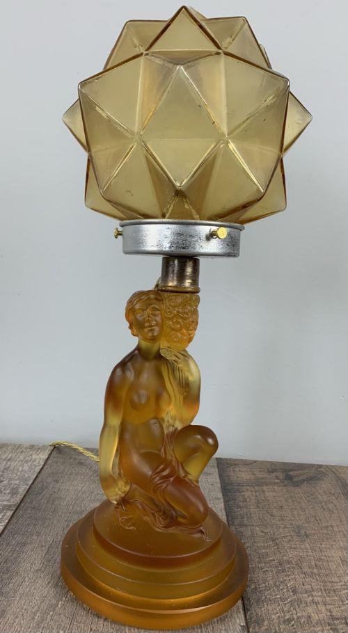 Art Deco Walther And Sohne Glass Table Lamp, Circa 1930's, Rewired And Pat Tested