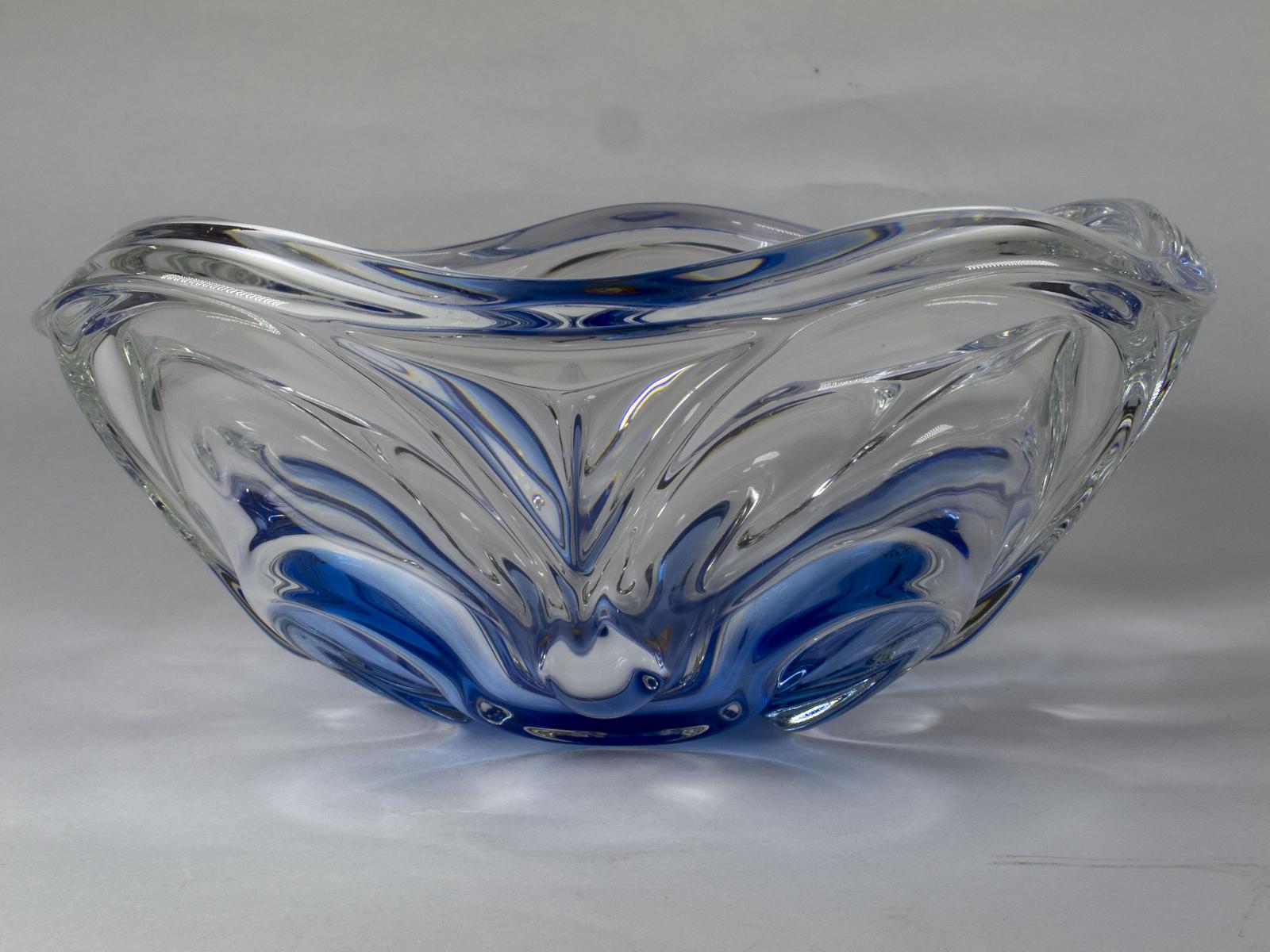 Art Deco Waltherglas Blue Peacock 'Irene' Glass Bowl