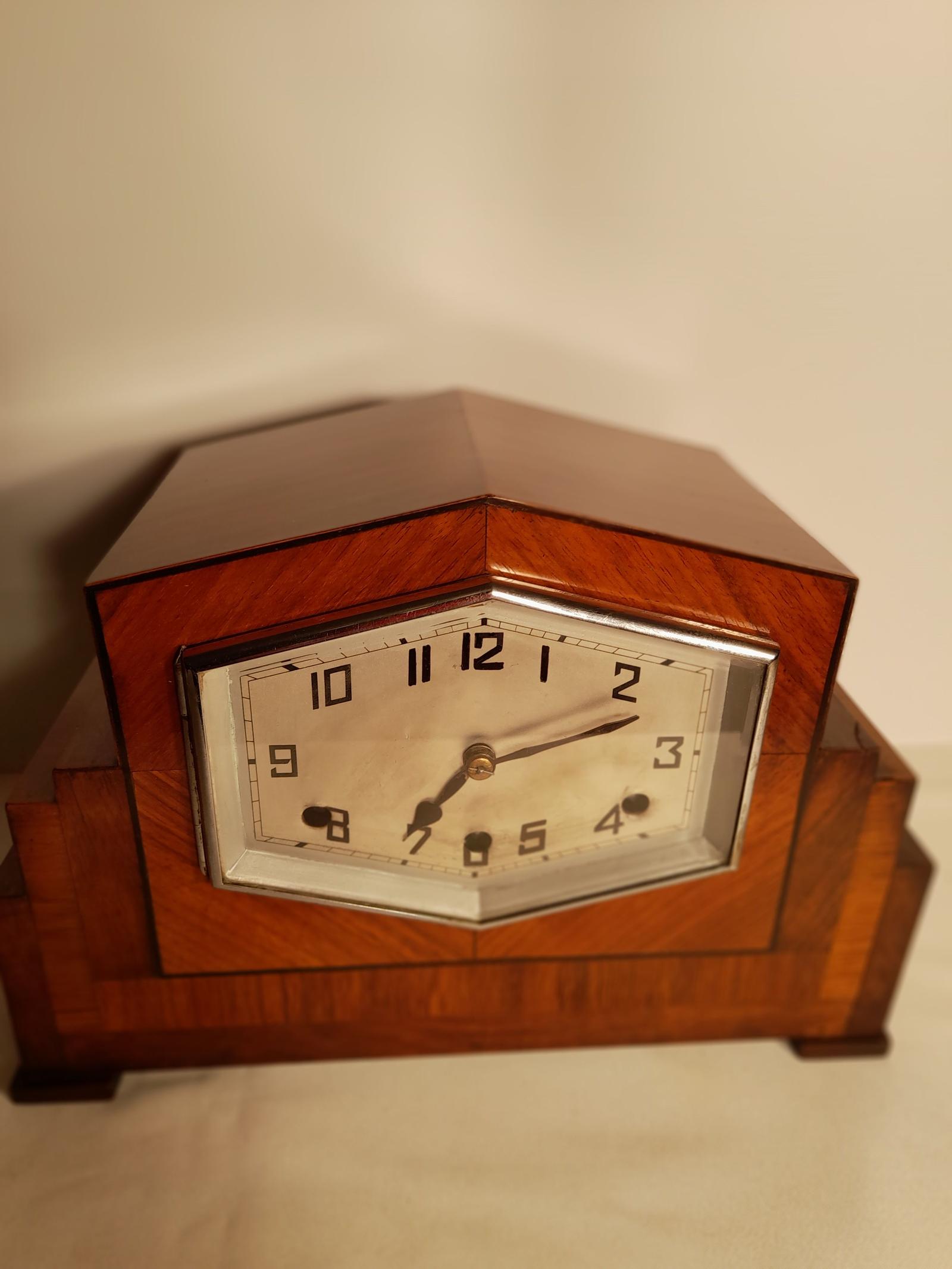 Art-deco, Westminster-chime, Walnut, Mantel Clock