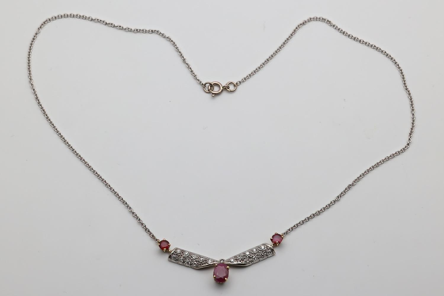 Art Deco White Gold Necklace with Diamonds & Rubies (1 of 4)