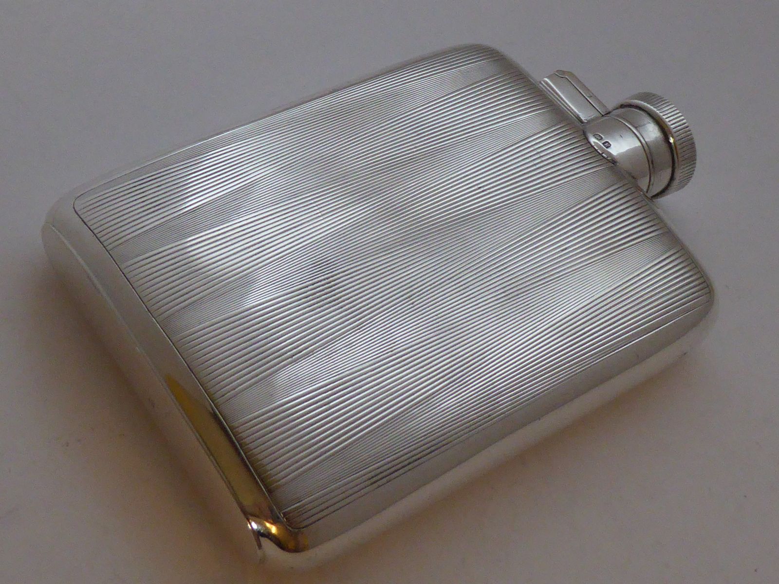 Art Deco William Neal 1929 Solid Hallmarked Silver Hip Flask 129.1g