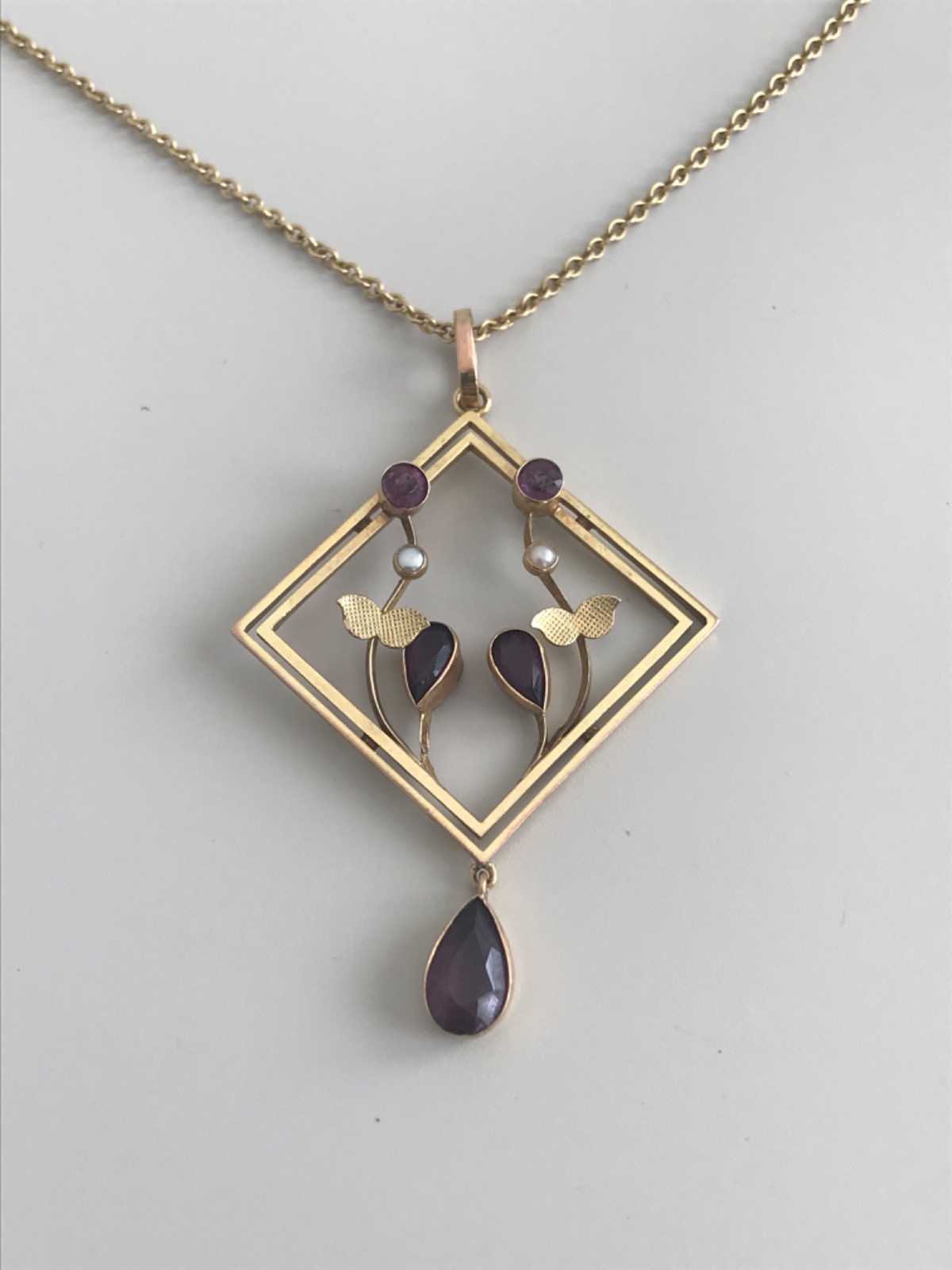 Art Nouveau 15ct Amethyst & Seed Pearl Necklace (1 of 5)