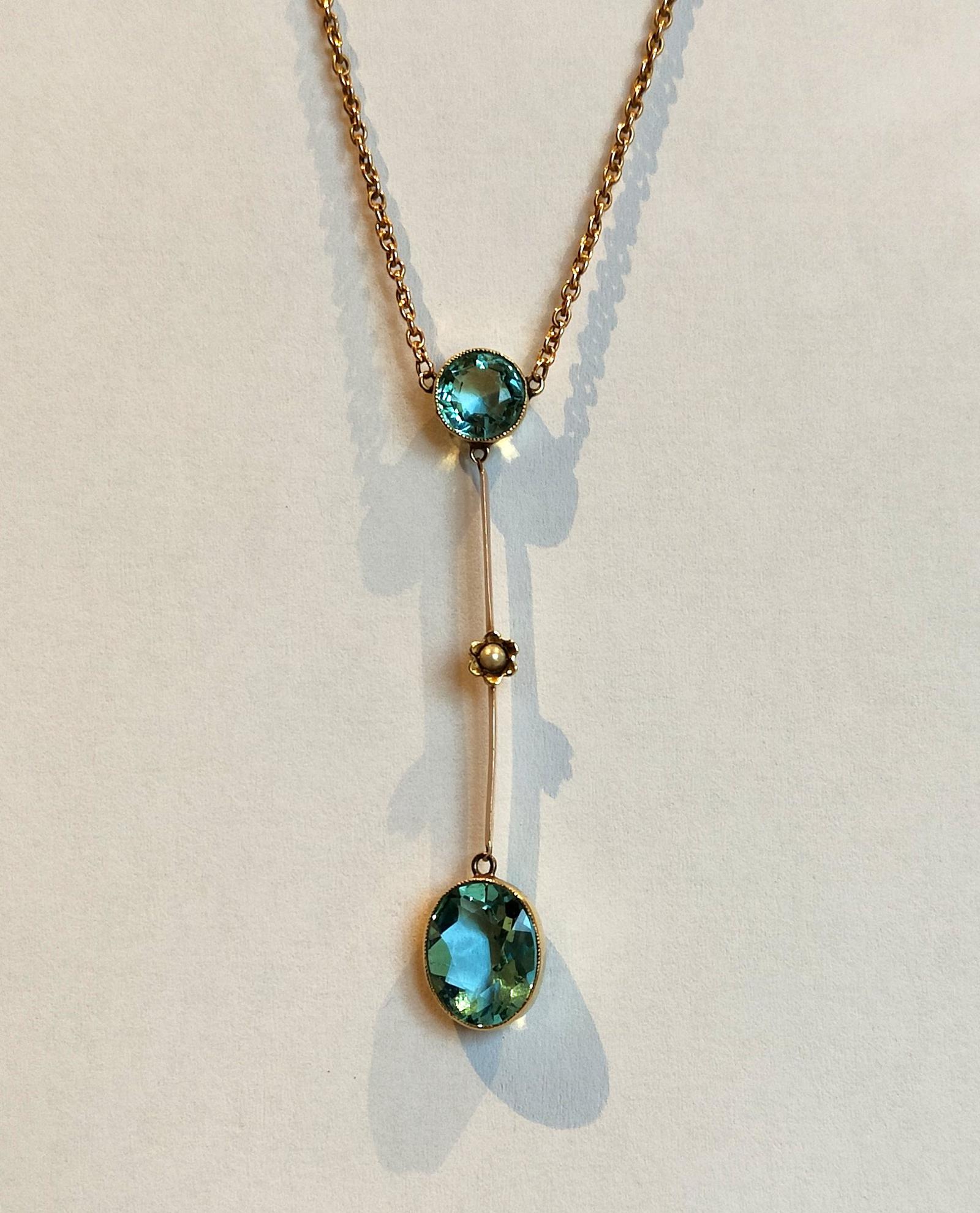 Art Nouveau 15ct Gold Aquamarine Lavalier Necklace (1 of 11)