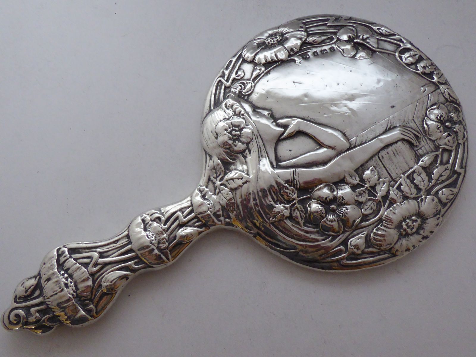 Art Nouveau 1902 Solid Hallmarked Silver Hand Mirror