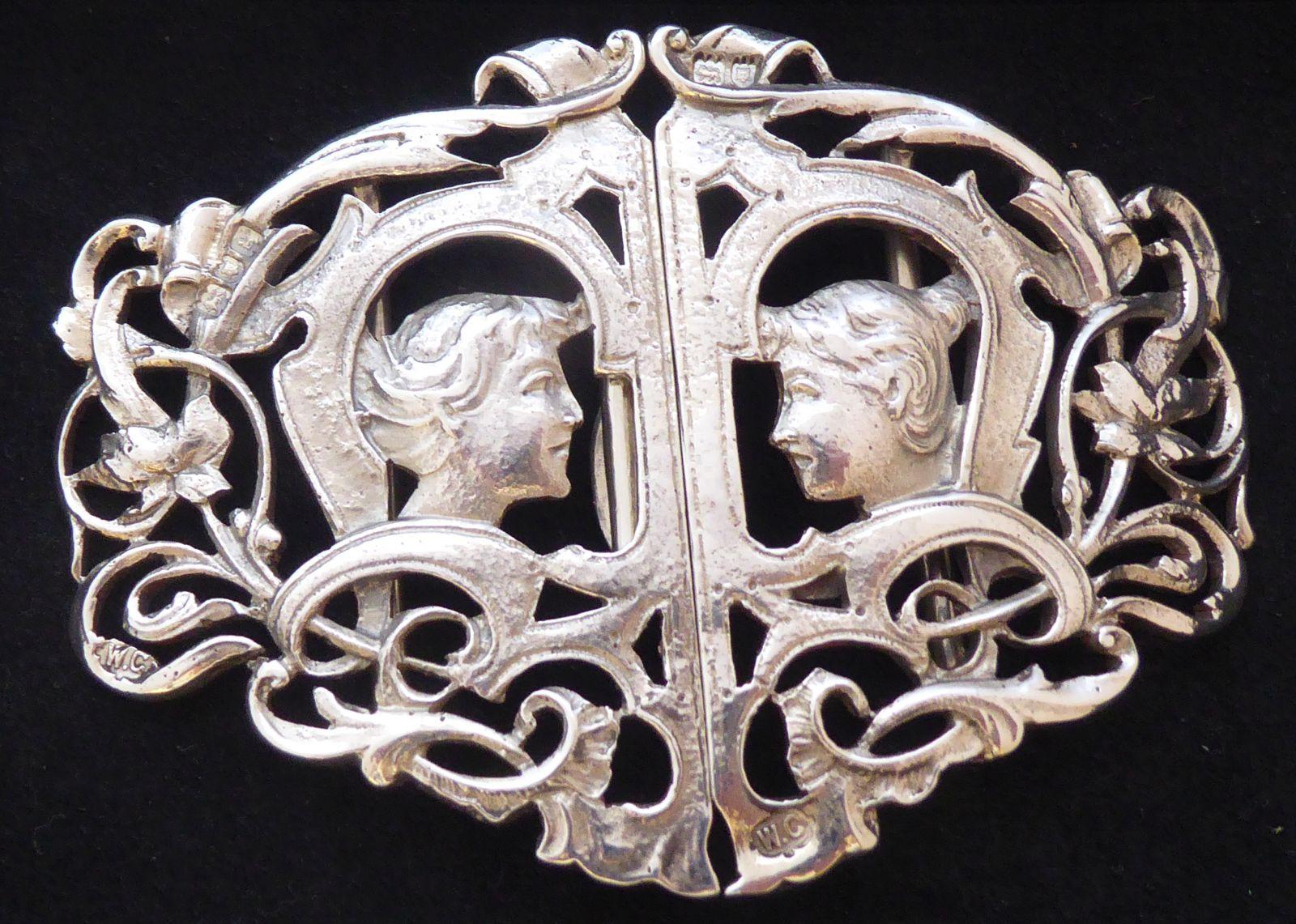 Art Nouveau 1902 Solid Silver Nurses Belt Buckle W Comyns Mother & Daughter