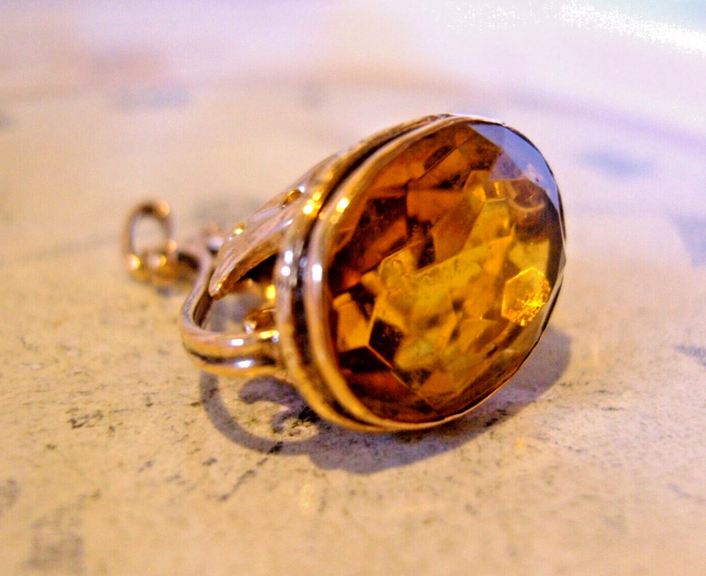 Art Nouveau 1910 Pocket Watch Chain Fob Antique 10ct Rose Gold Filled with Citrine Stone