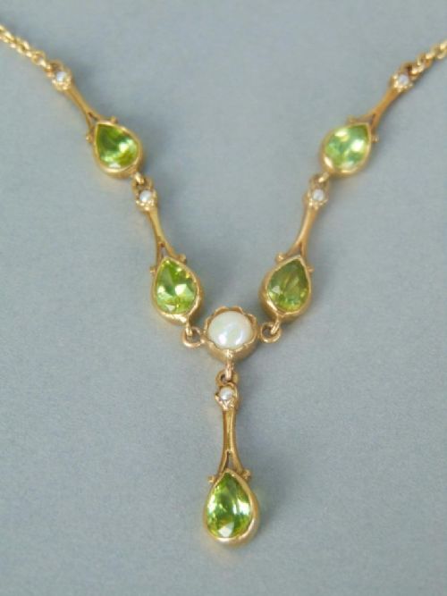 Art Nouveau 9ct Gold Peridot & Seed Pearl Necklace (1 of 1)