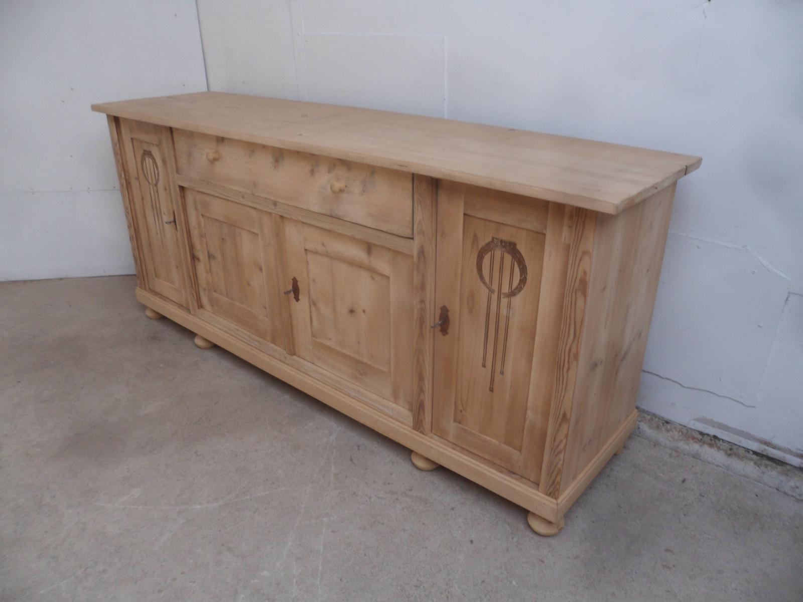 Art Nouveau Antique Pine 4 Door Dresser Base / TV Stand to wax / paint