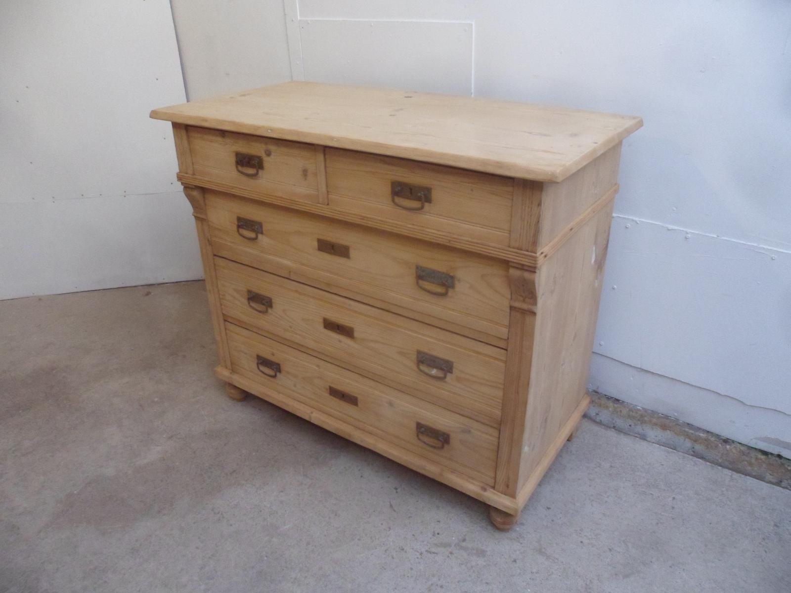 Art Nouveau Antique Pine 5 Drawer Chest of Drawers to Wax/Paint c1910