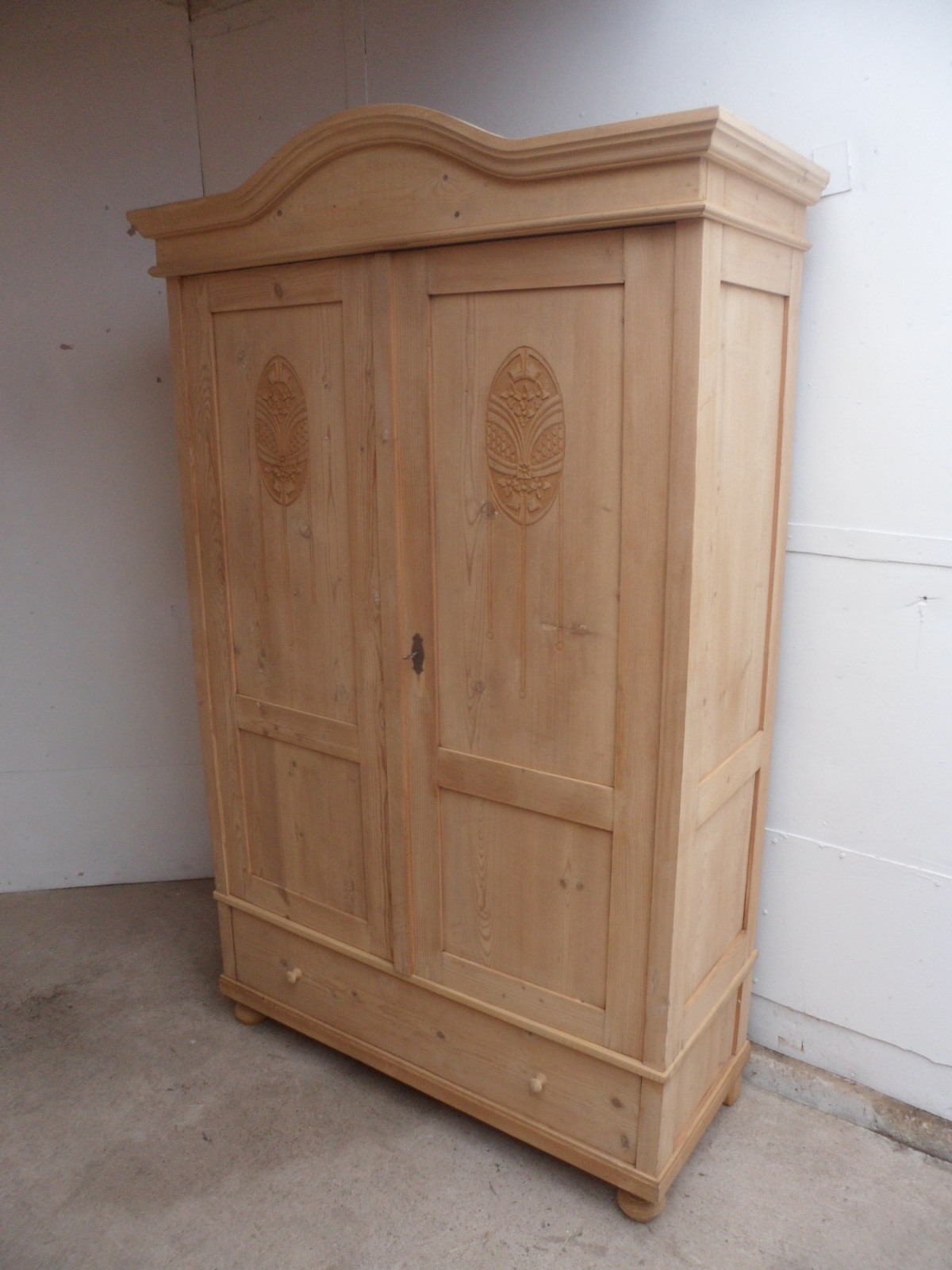 Art Nouveau Arch Top Antique Pine 2 Door Knockdown Wardrobe to paint / wax
