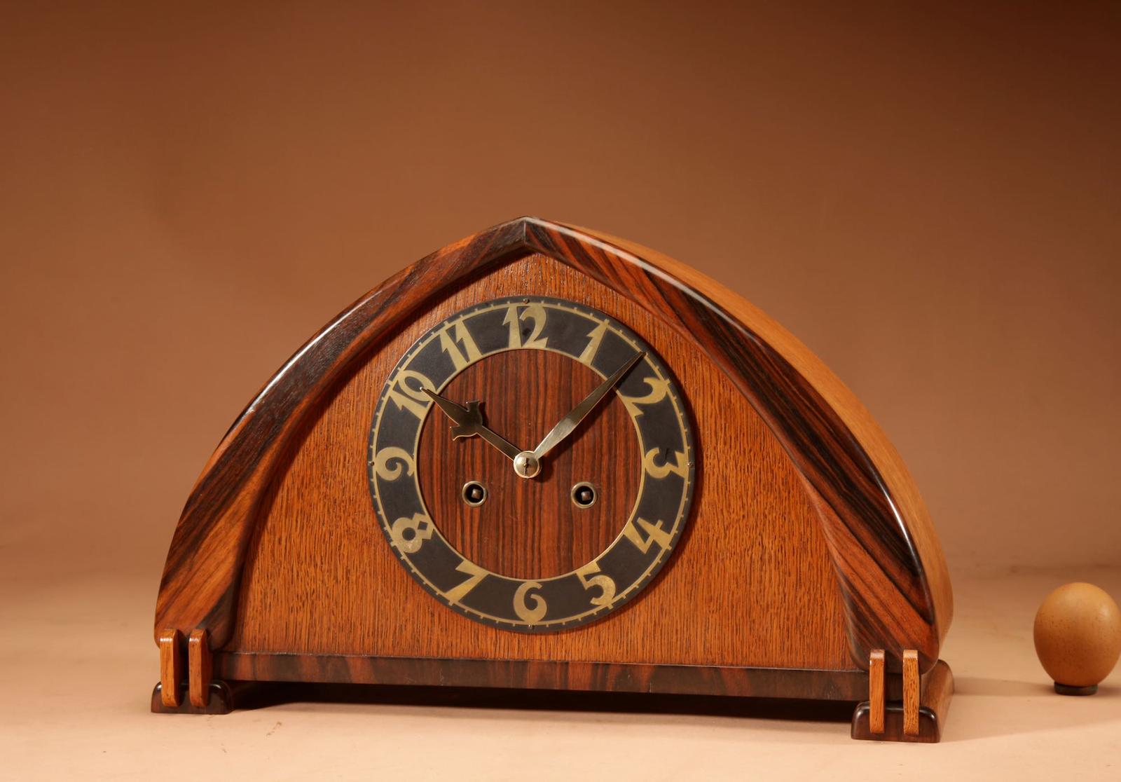 Art Nouveau / Art Deco Amsterdam School Very Stylish Design Oak and Macassar Ebony/coromandel Mantel Clock