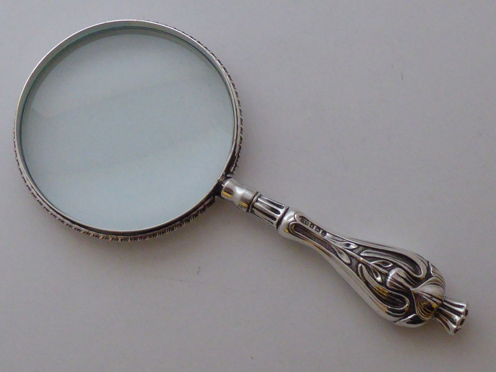 Art Nouveau Birmingham 1909 Solid Hallmarked Silver Hand Magnifying Glass
