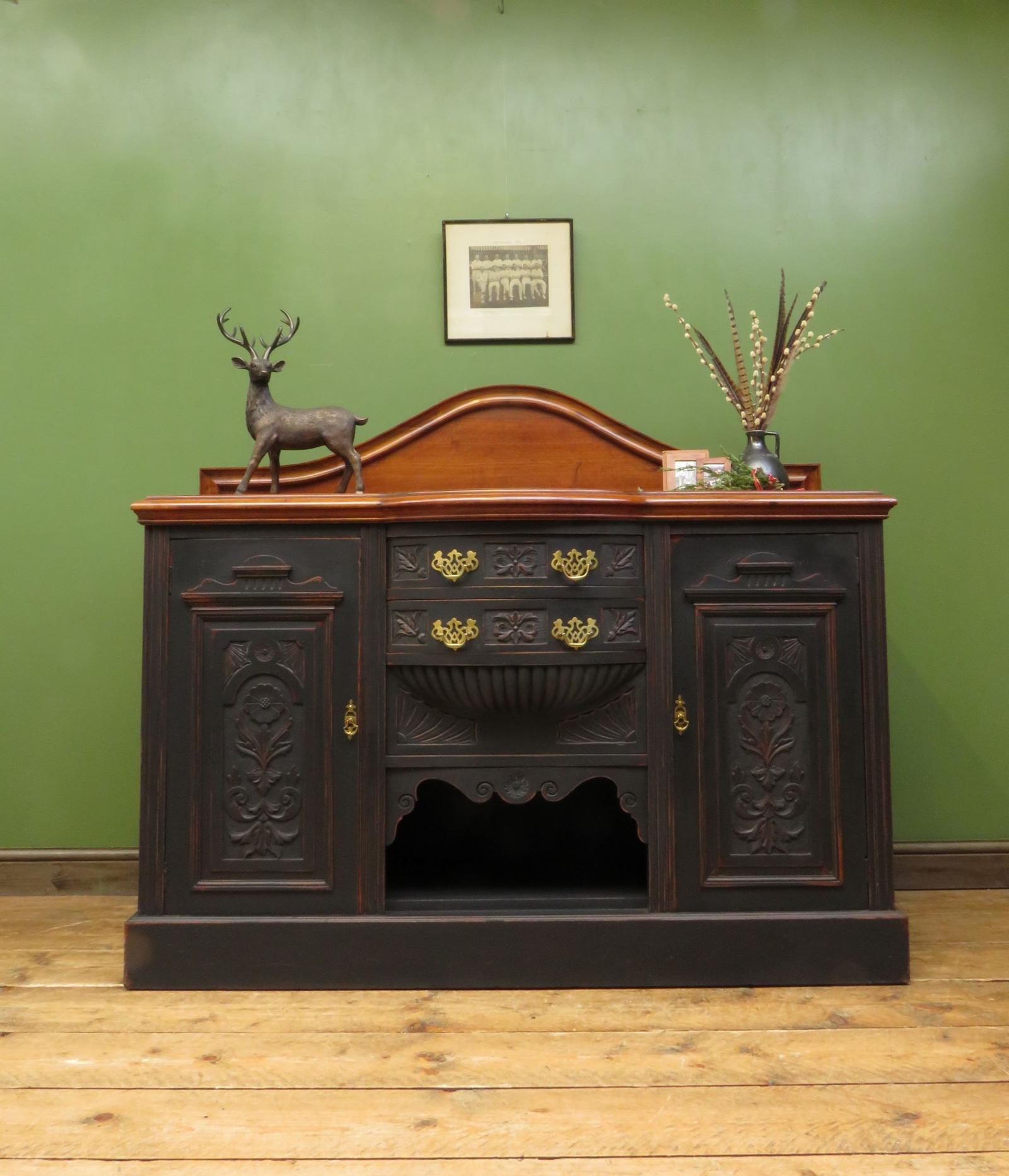 Art Nouveau Black Painted Sideboard, Gothic shabby chic