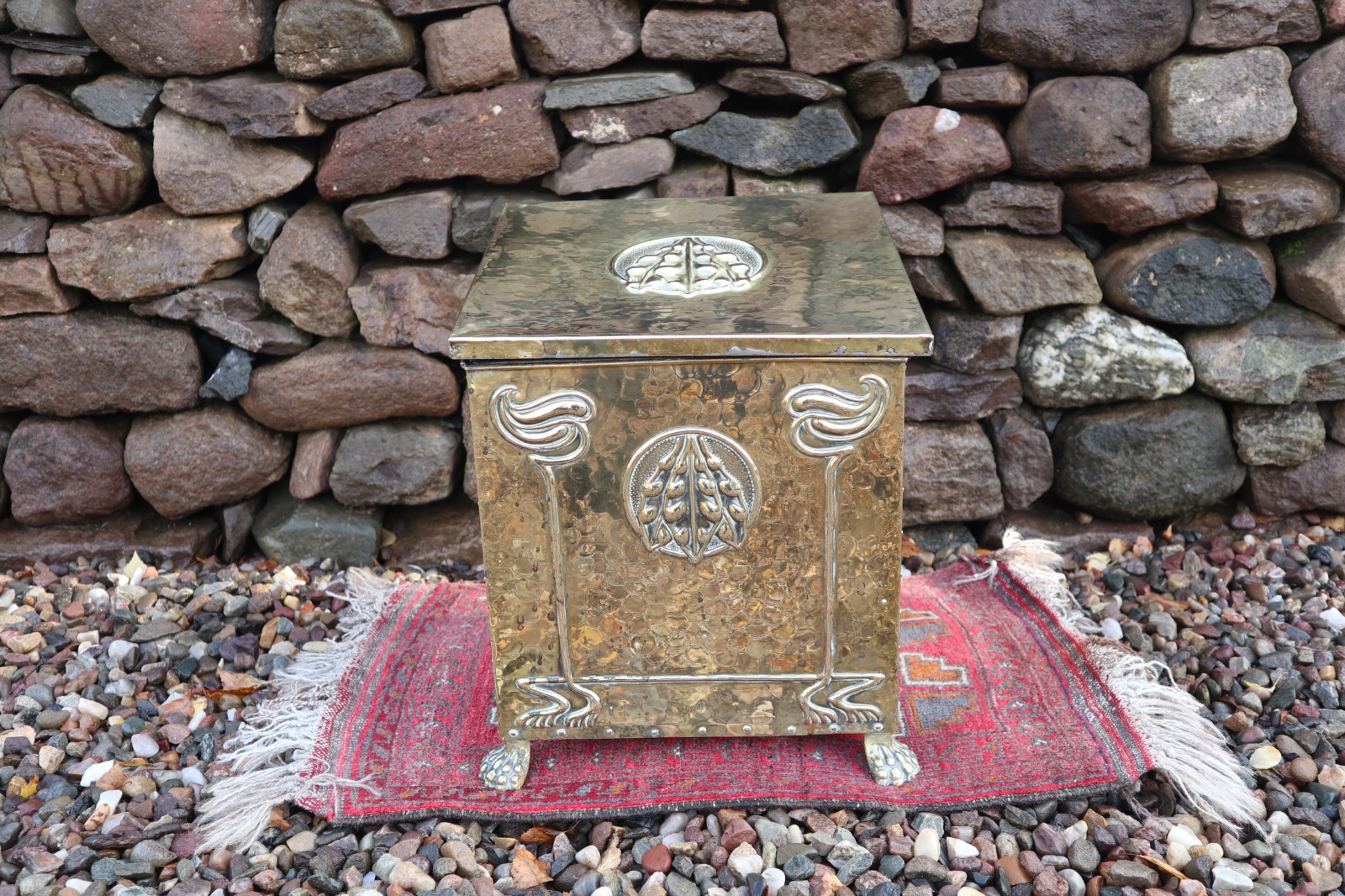 Art Nouveau Brass Coal Box On RAised Lions Feet with Liner C.1900-1910 (1 of 1)