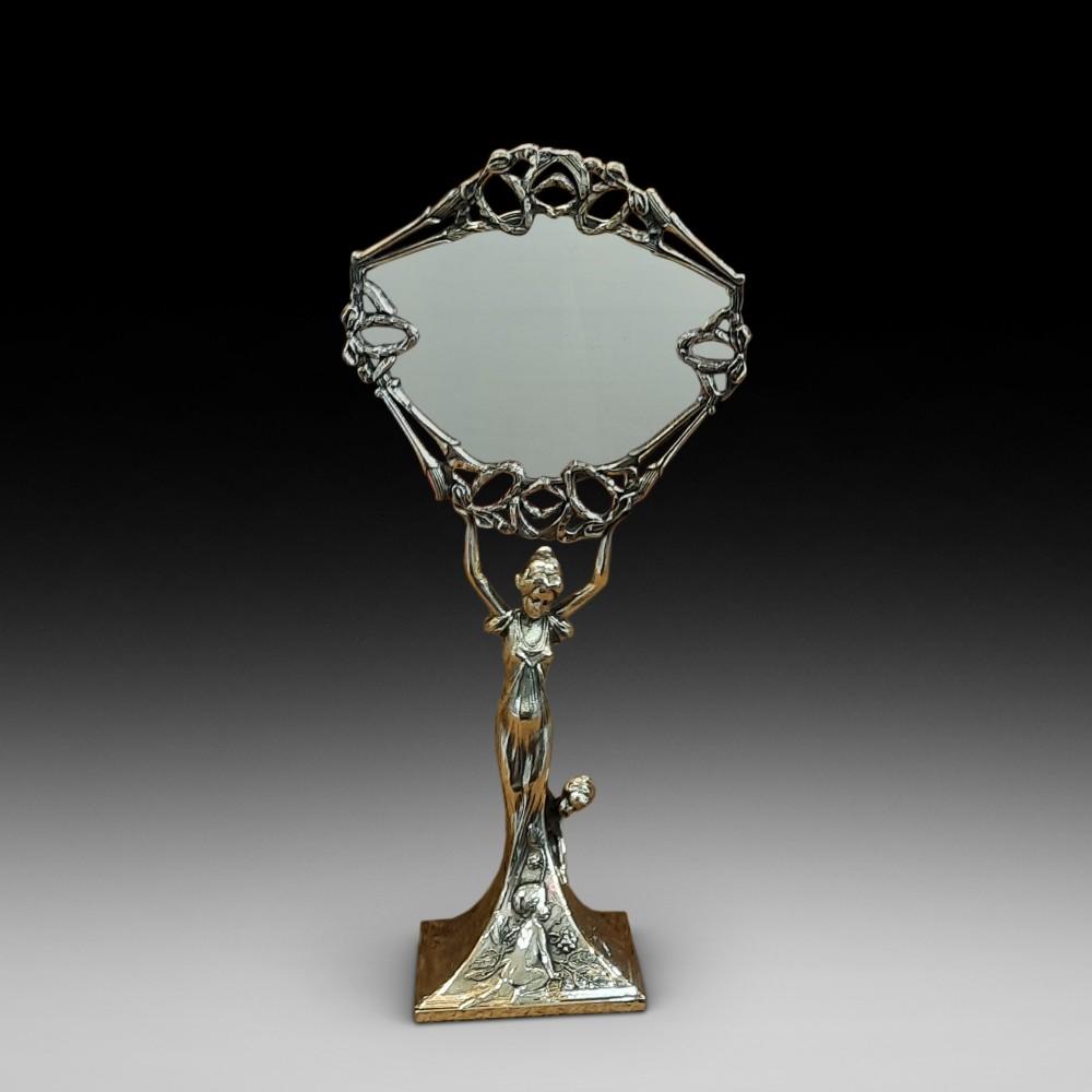 Art Nouveau Brass Figural Dressing Table Mirror (1 of 9)