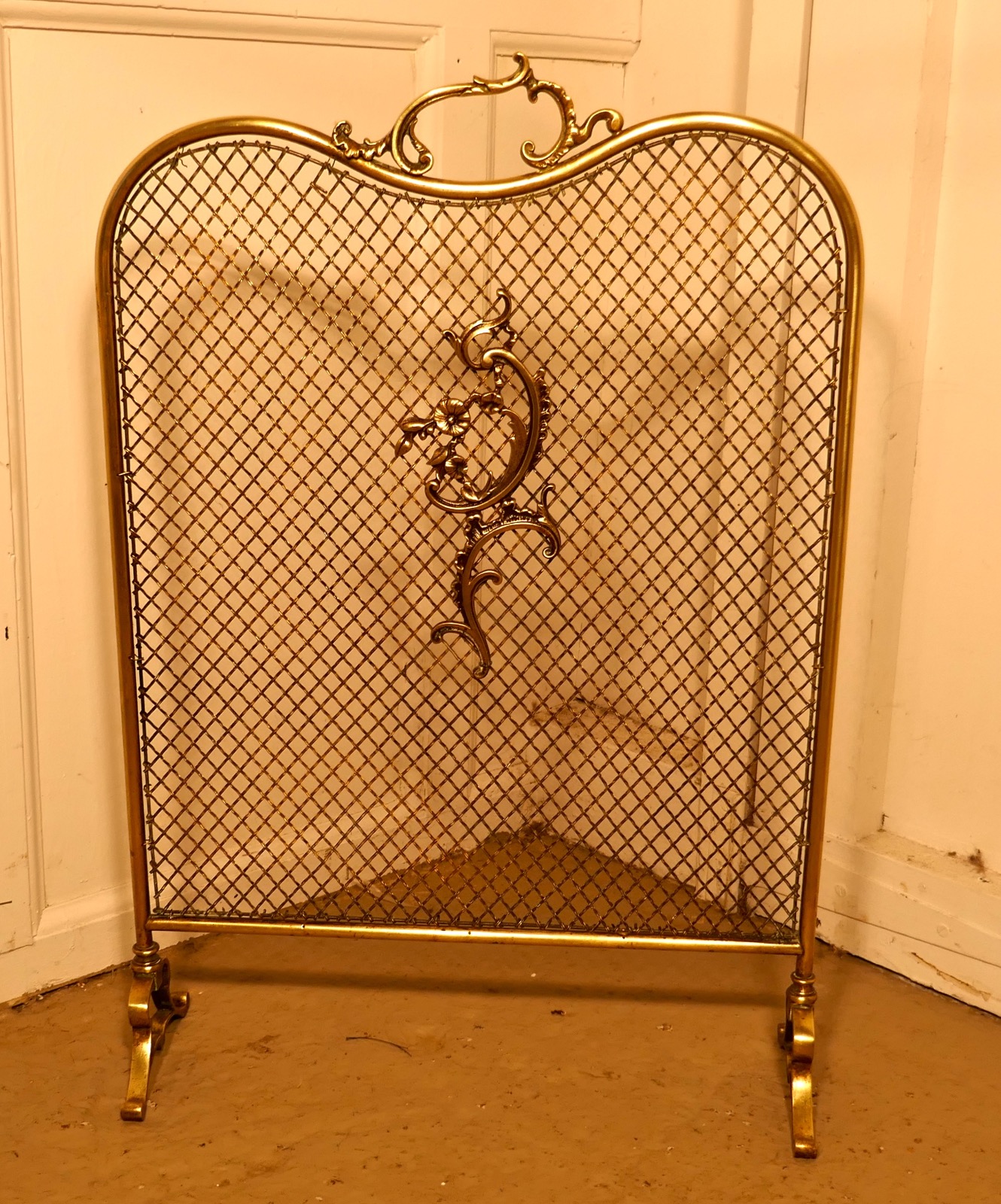 Art Nouveau Brass Fire Guard, Spark Screen