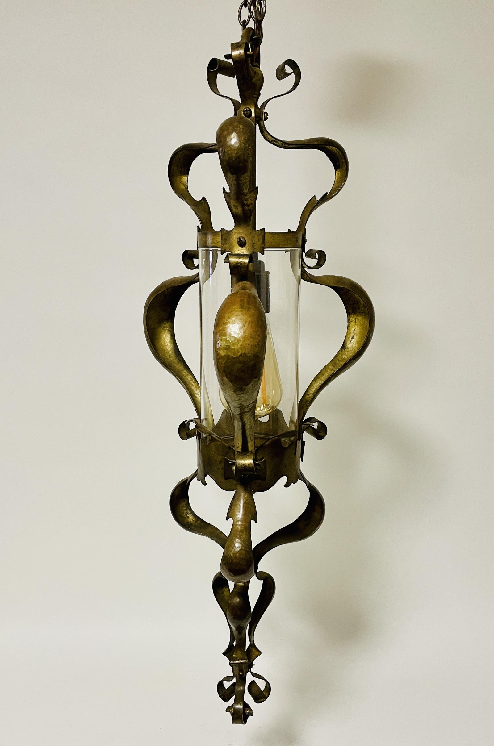 Art Nouveau Brass Hanging Hall Lantern (1 of 8)