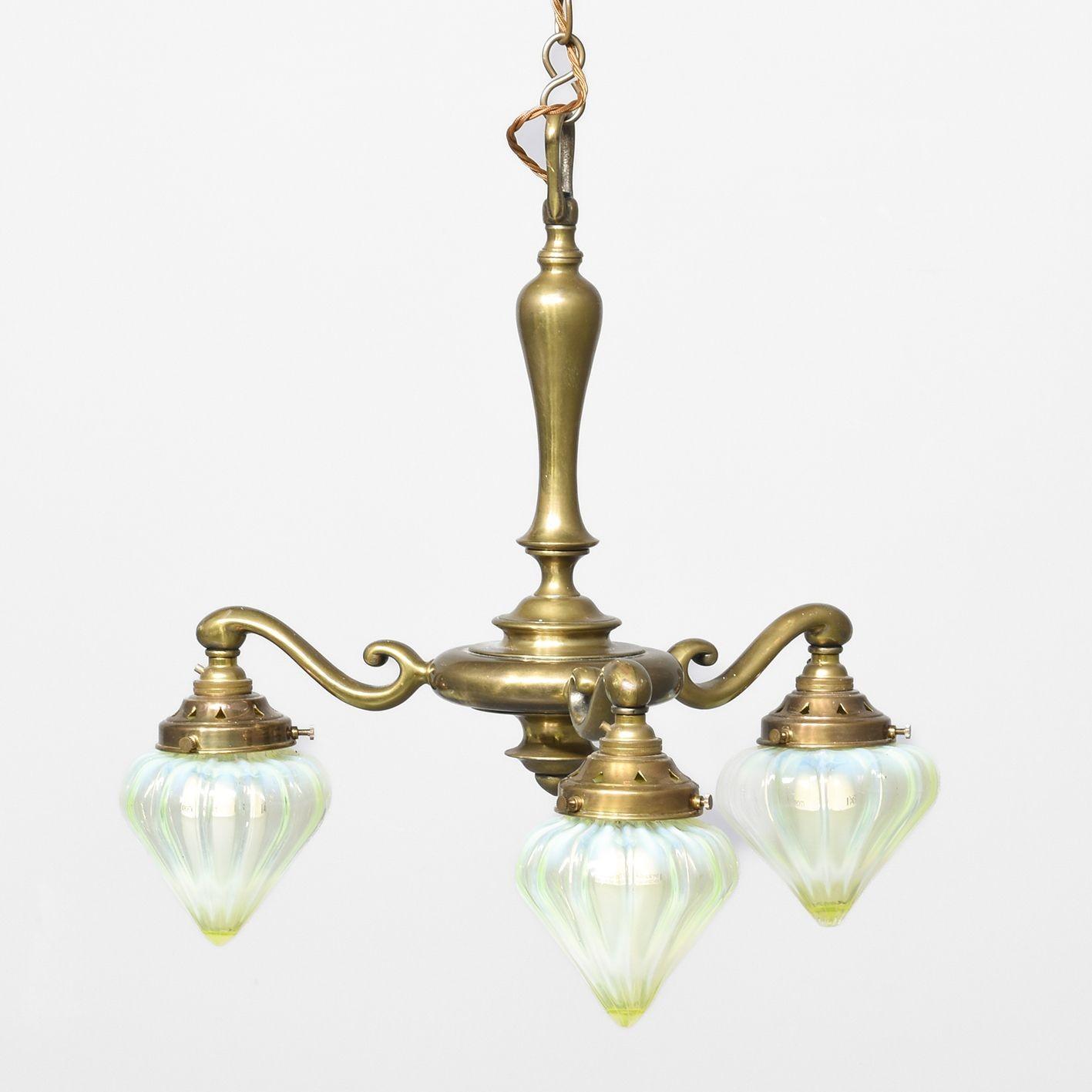 Art Nouveau Brass & Opaline Glass Chandelier (1 of 5)