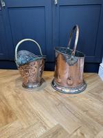 Art Nouveau fireside bucket, all in copper and age related wear and marks. Lightly polished,60 cm high to the top of the handle.