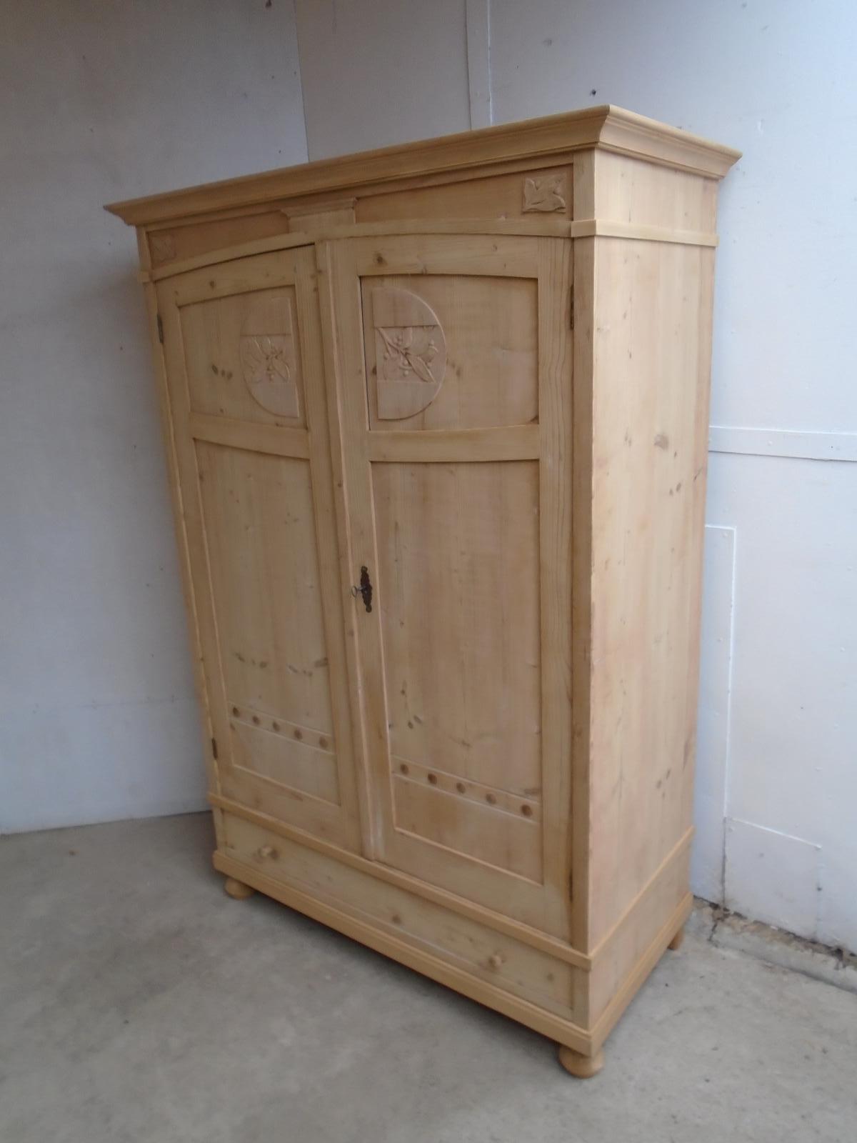 Art Nouveau Carved Antique Pine Knockdown Wardrobe to wax / paint