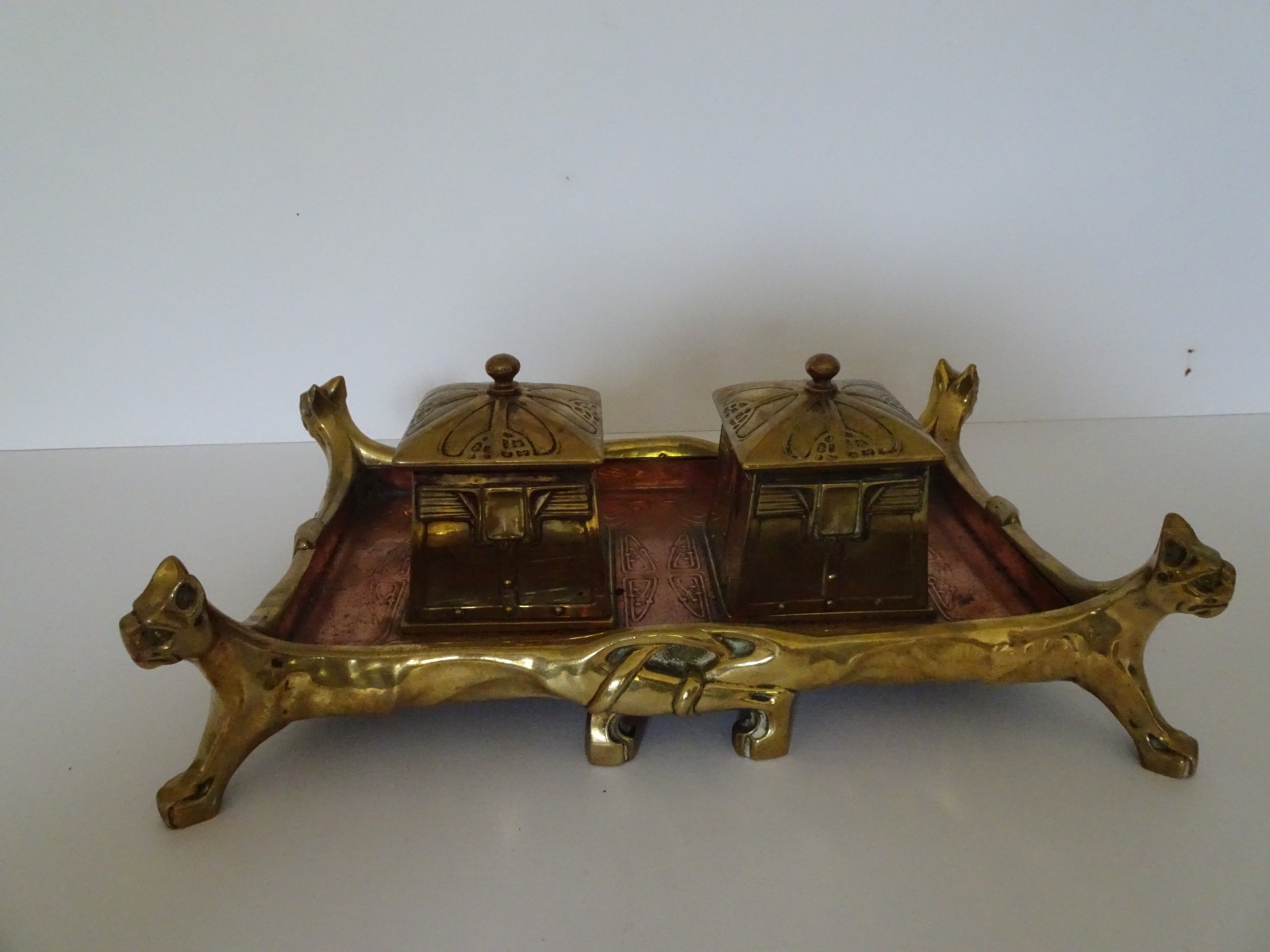 Art Nouveau Copper and Brass Double Inkstand. Art Nouveau Secessionist Style.