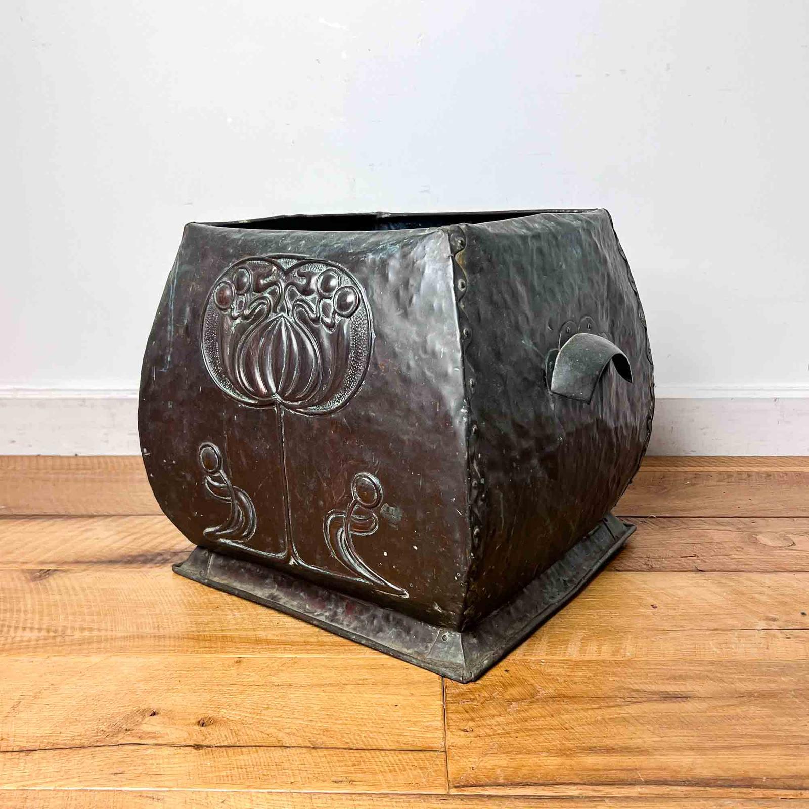 Art Nouveau Copper Coal Bin or Planter