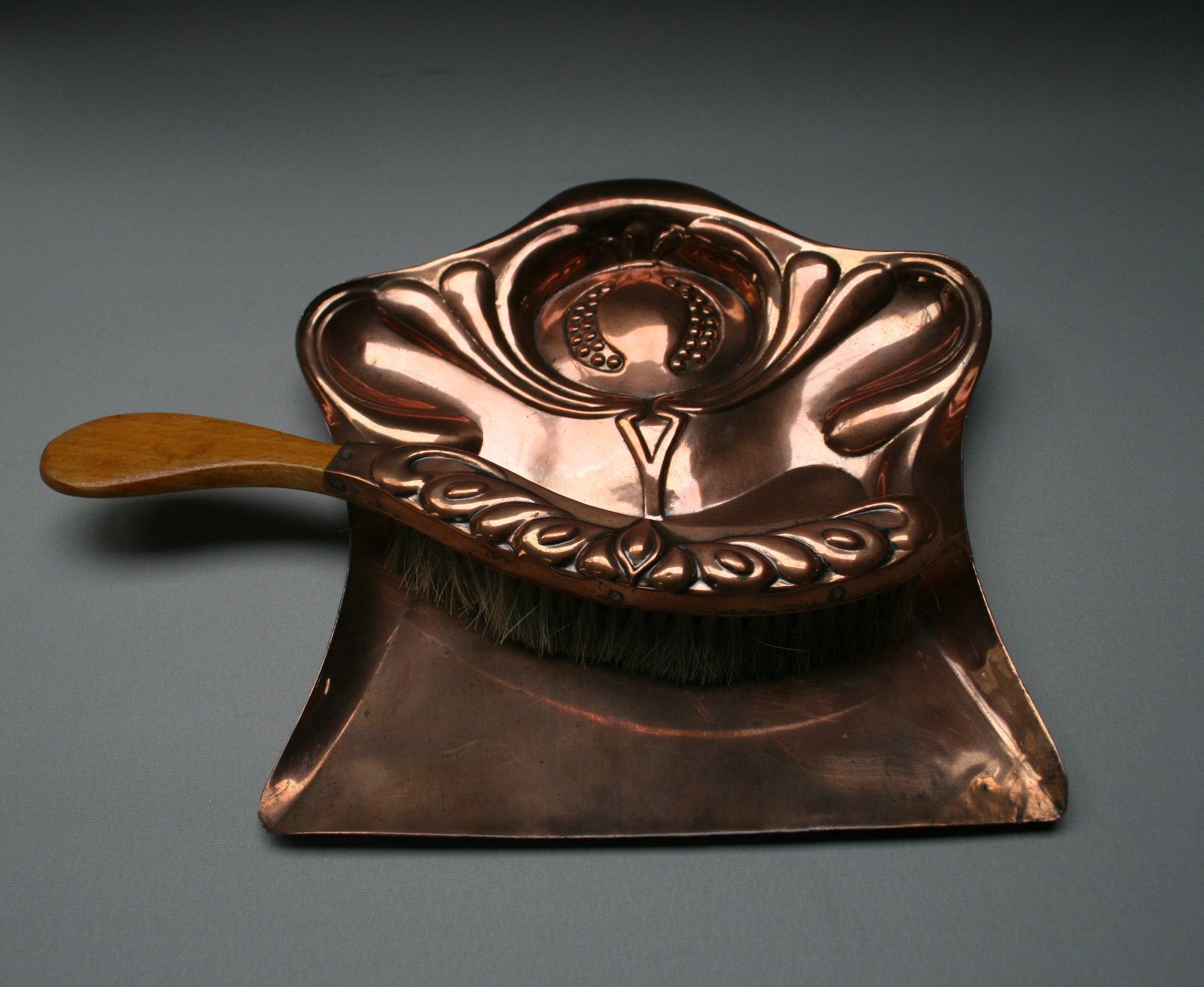 Art Nouveau Copper Dustpan / Crumb Tray & Brush C.1910