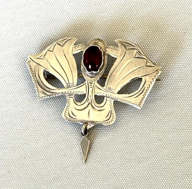 Art Nouveau Danish Silver & Garnet Cartouche Brooch