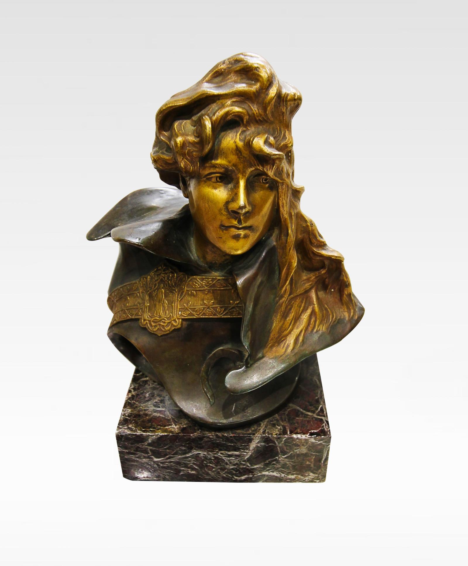 Art Nouveau Gilt And Bronze Patinated Bust Of Sarah Bernhardt By Paul Francois Berthoud
