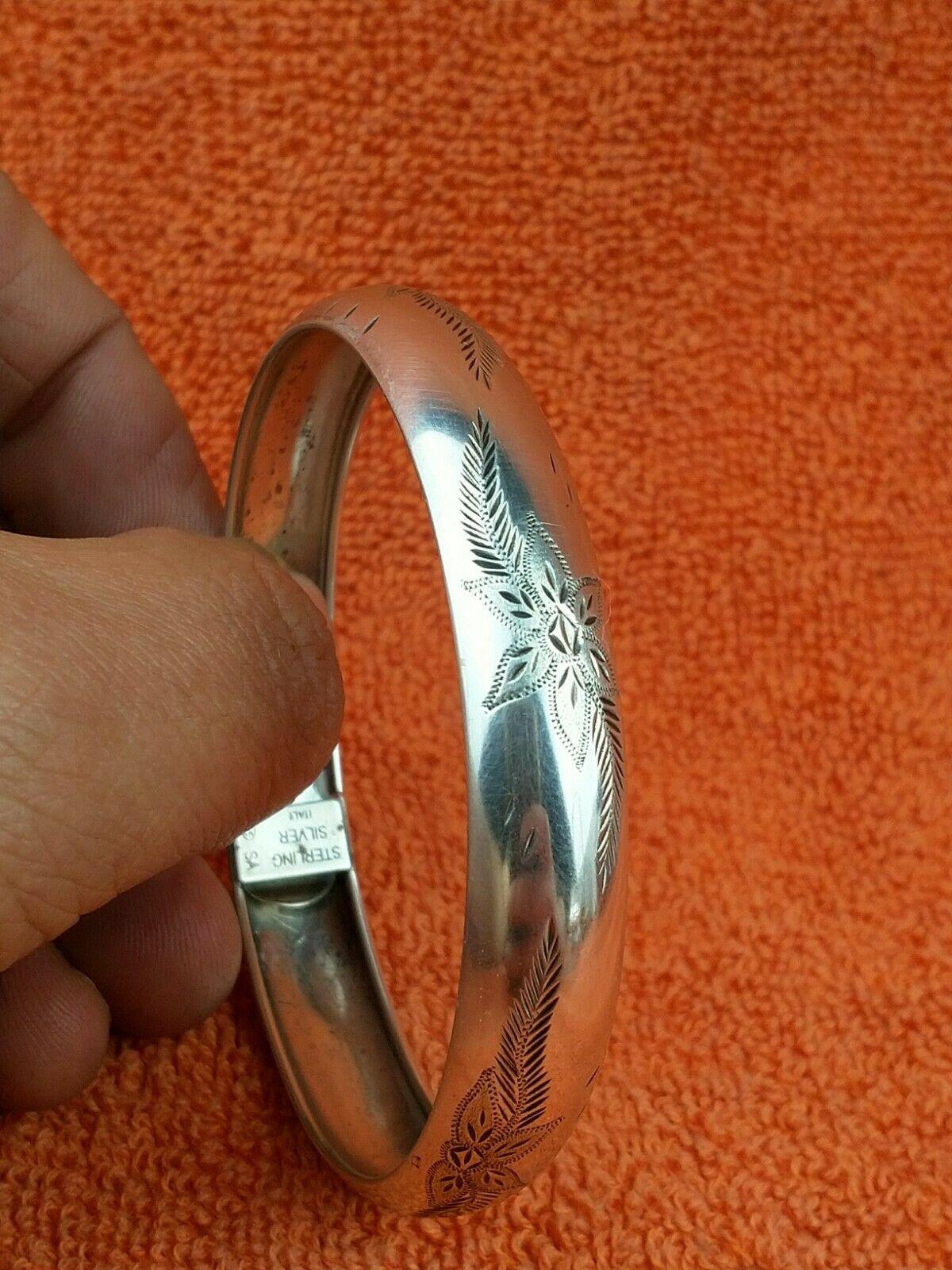 Art Nouveau Hallmarked 925 Sterling Silver Bangle Cuff Bracelet Salerno, Italy
