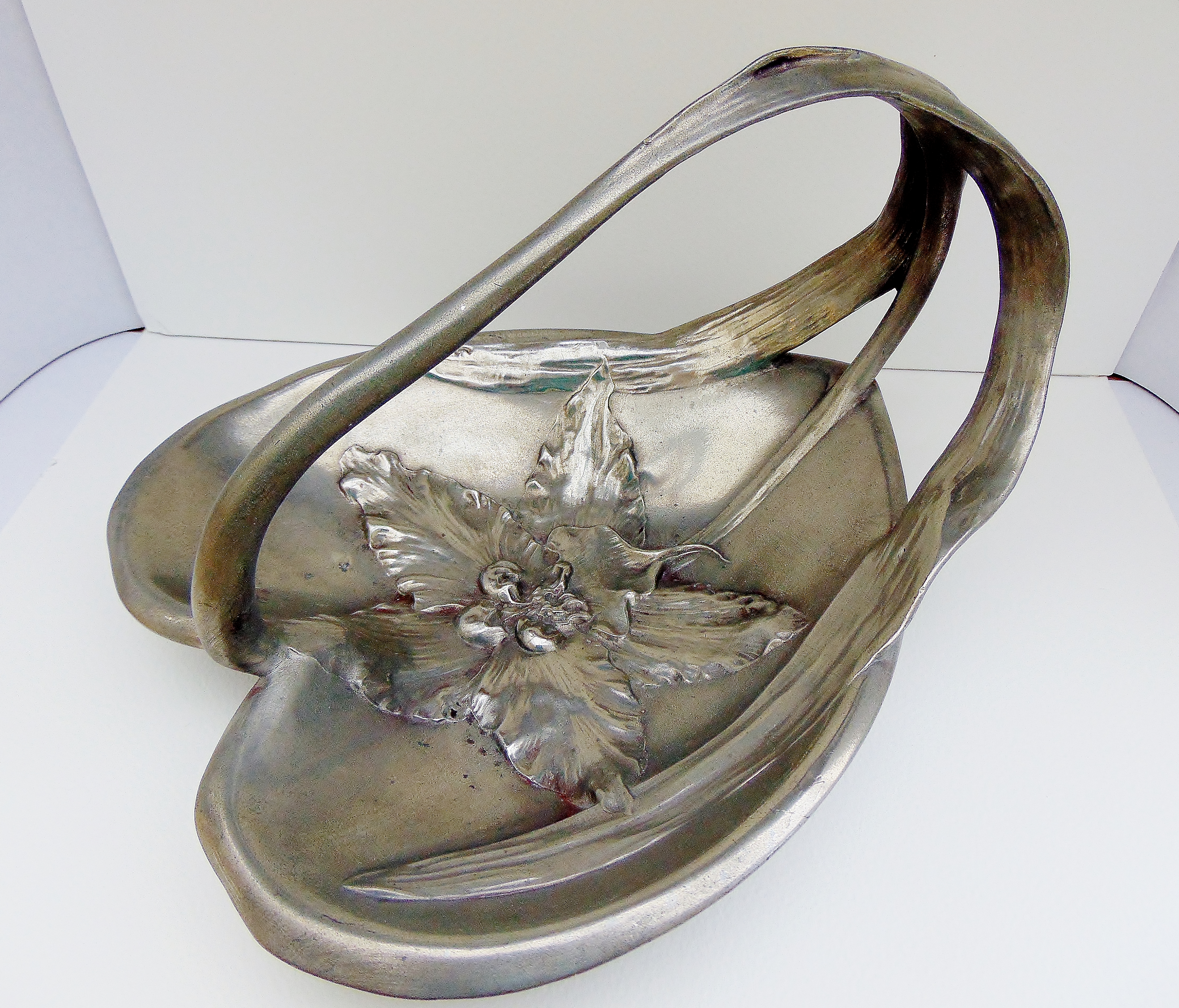 Art Nouveau Heart Shaped Large Pewter Basket Dish