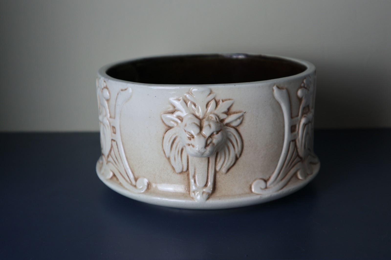 Art Nouveau - Henry Tooth & Co, Bretby Jardiniere / Planter with Three Stylised Roaring Lions Head Relief Mouldings circa 1910.