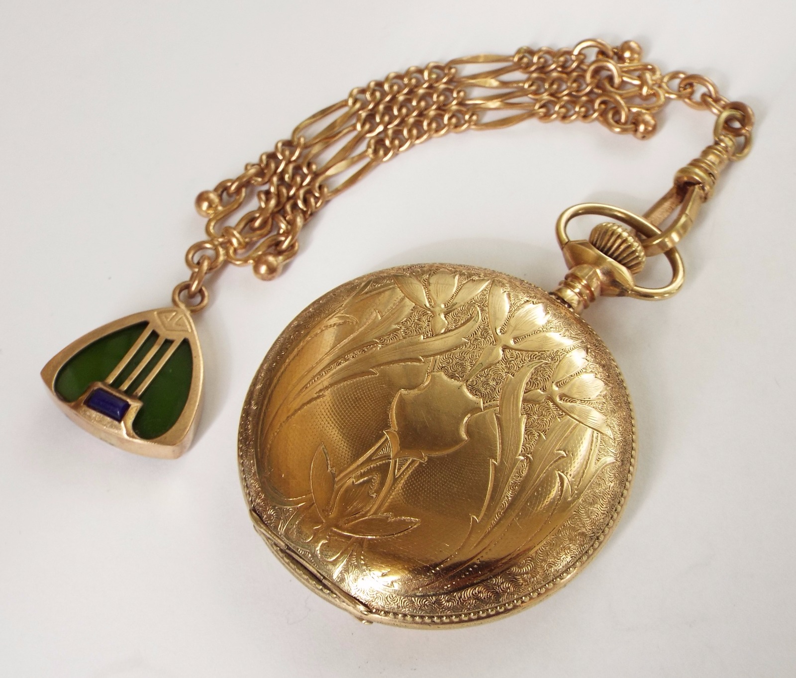 Art Nouveau Hunter Pocket Watch & Albert, 1912