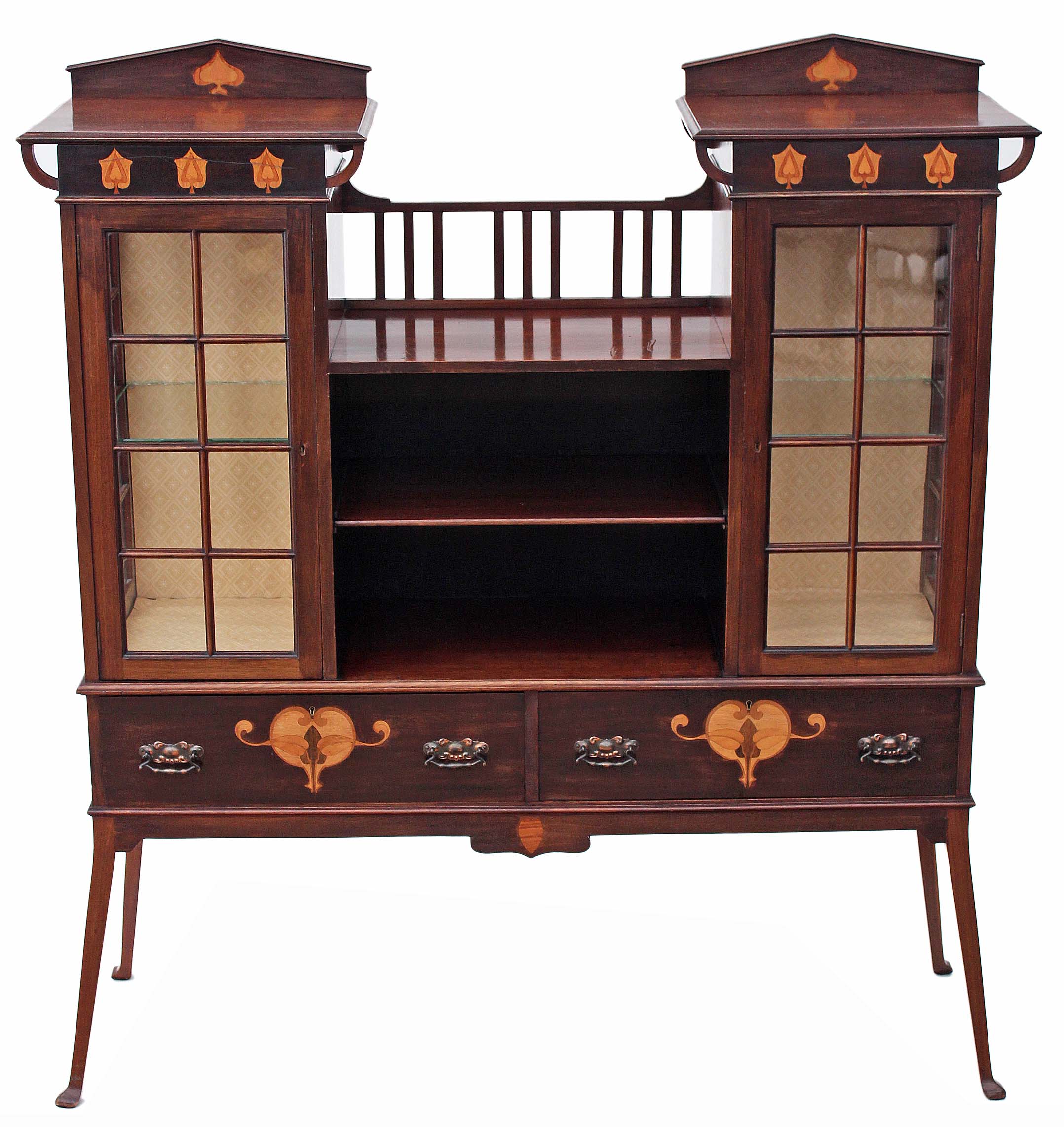 Art Nouveau inlaid mahogany glazed display cabinet (1 of 1)