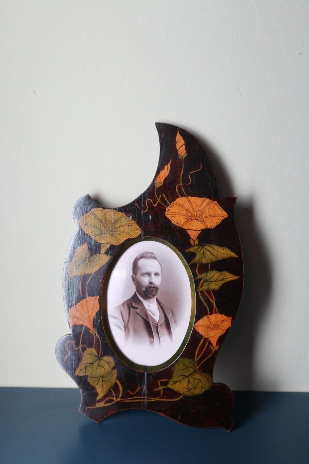 Art Nouveau / Jugendstil Floral Decorated Wooden Asymmetric Oval Portrait Photograph Frame Free-Standing c.1900