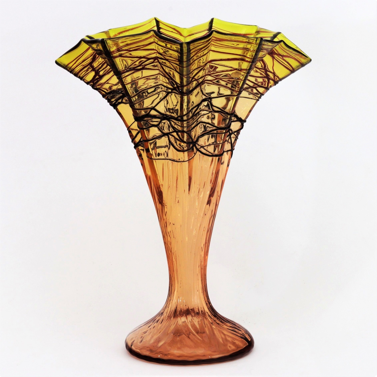 Art Nouveau Kralik Glass Fan Shaped Art Vase C.1910